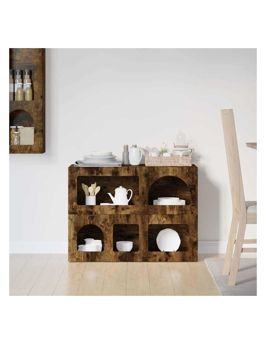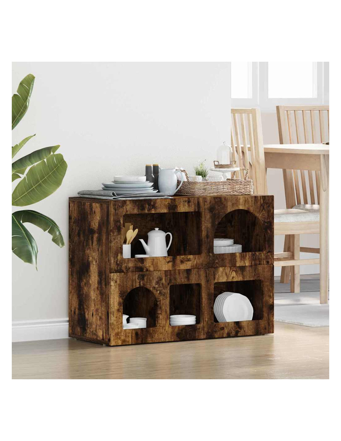 - Caratteristiche /Funzione /Design: La sua versatilità la rende ideale per diverse funzioni, da buffet a console. È robusta e può contenere vari oggetti, garantendo sia stoccaggio che esposizione. Combina semplicità e funzionalità, rispondendo alle esigenze moderne.