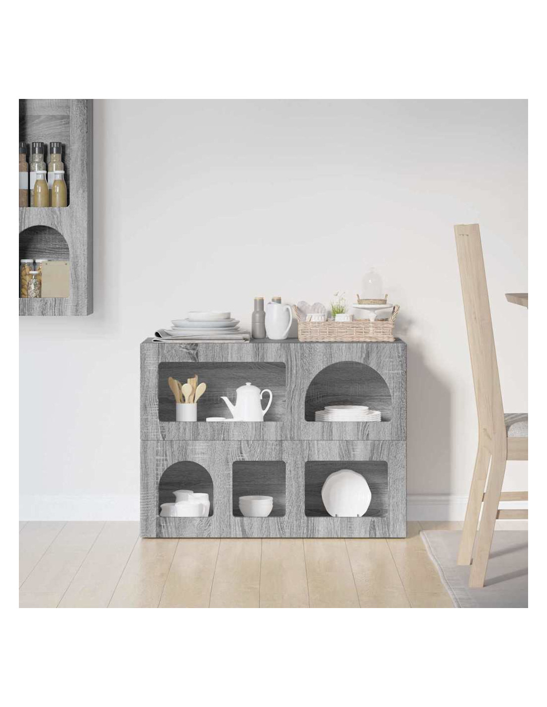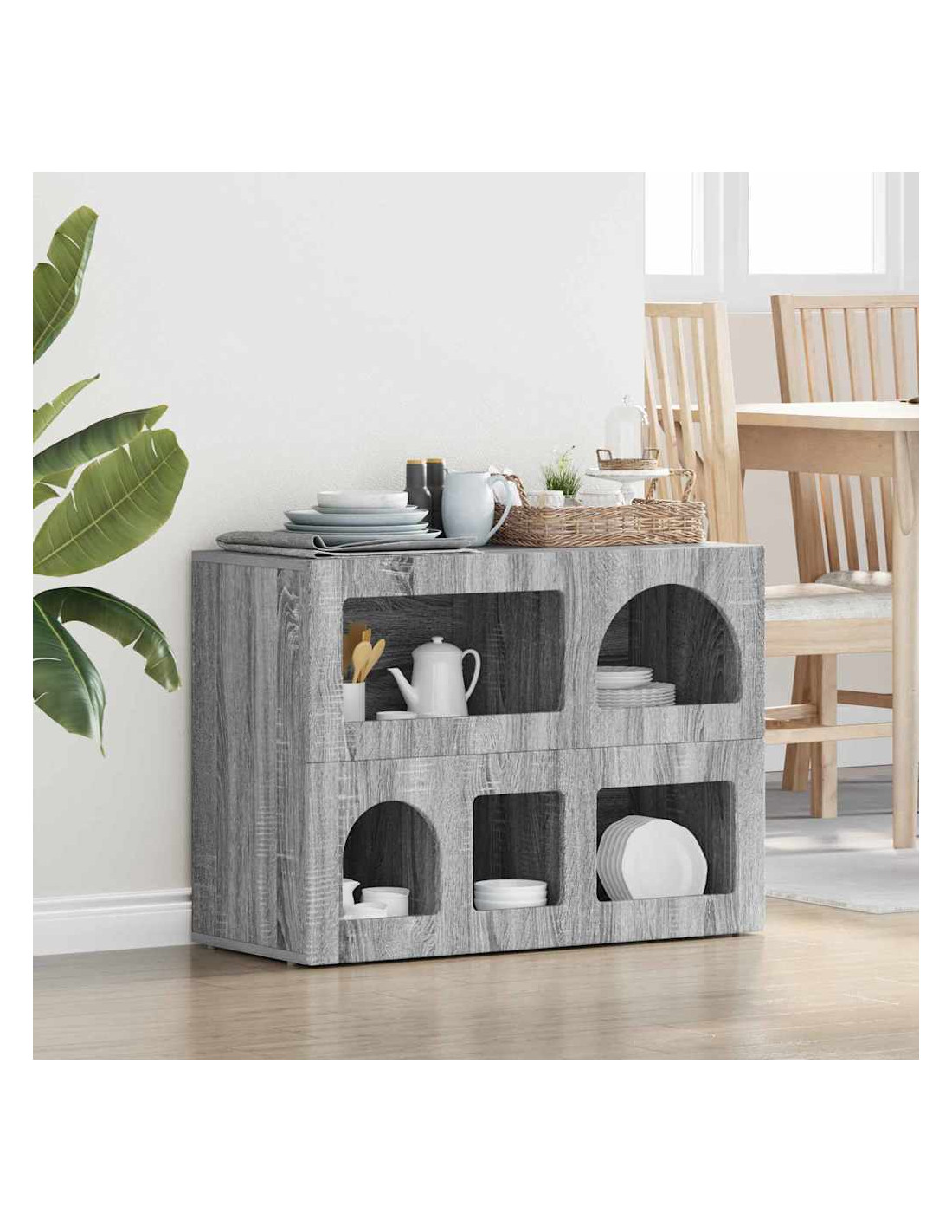 - Caratteristiche /Funzione /Design: La sua versatilità la rende ideale per diverse funzioni, da buffet a console. È robusta e può contenere vari oggetti, garantendo sia stoccaggio che esposizione. Combina semplicità e funzionalità, rispondendo alle esigenze moderne.