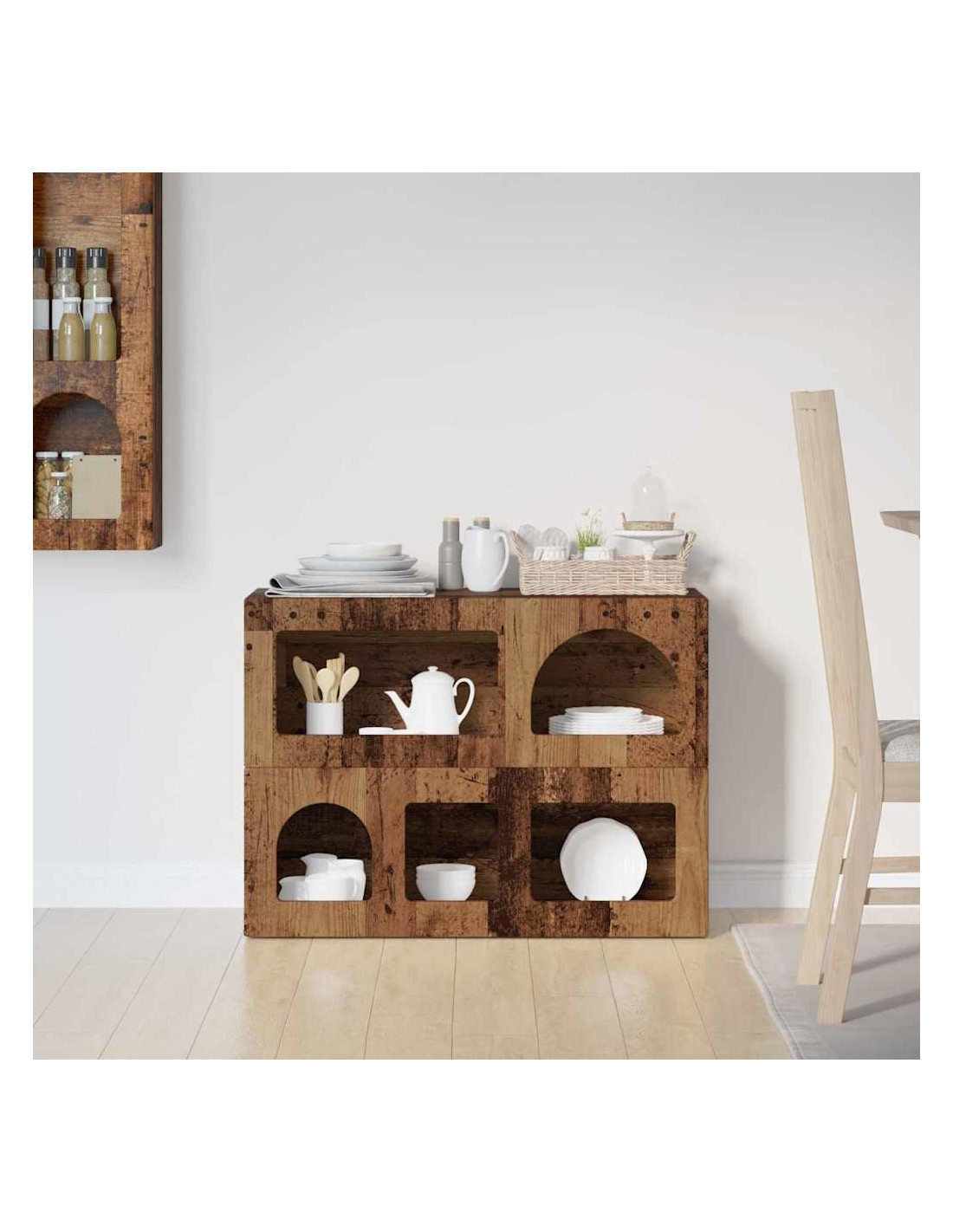 - Caratteristiche /Funzione /Design: La sua versatilità la rende ideale per diverse funzioni, da buffet a console. È robusta e può contenere vari oggetti, garantendo sia stoccaggio che esposizione. Combina semplicità e funzionalità, rispondendo alle esigenze moderne.