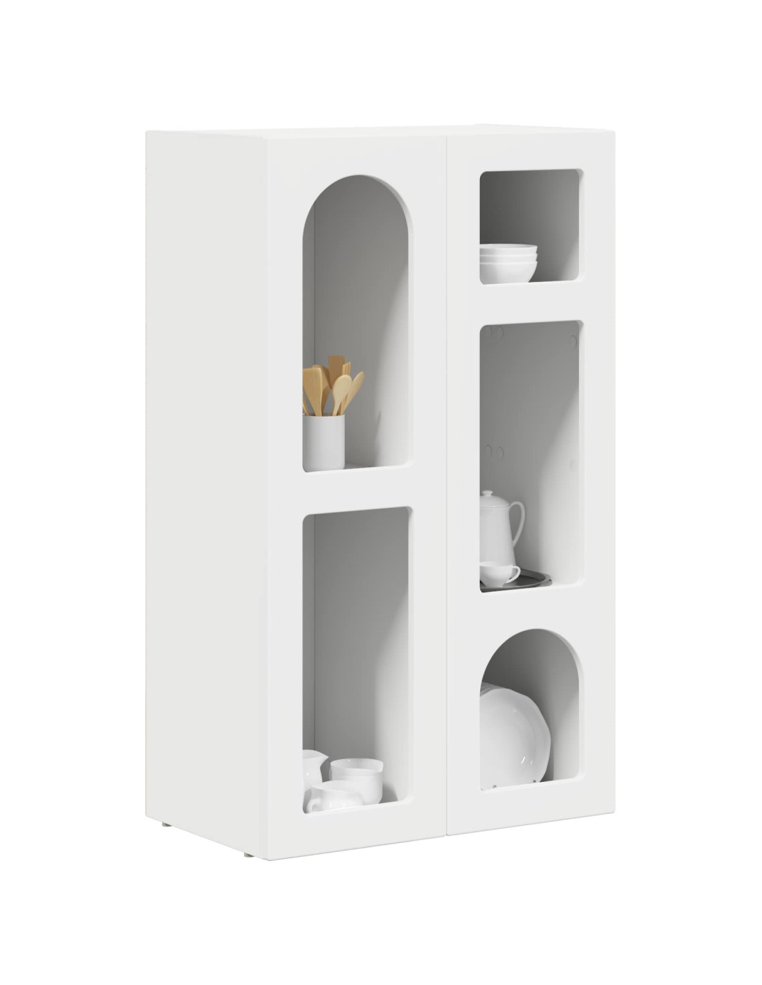 - Componenti inclusi: Il design è pensato per essere pratico, con ripiani in legno ingegnerizzato che offrono molto spazio per organizzare gli oggetti essenziali. Questi ripiani rinforzano la credenza, tenendo tutto in ordine e facilitando le riorganizzazioni quando necessario.
