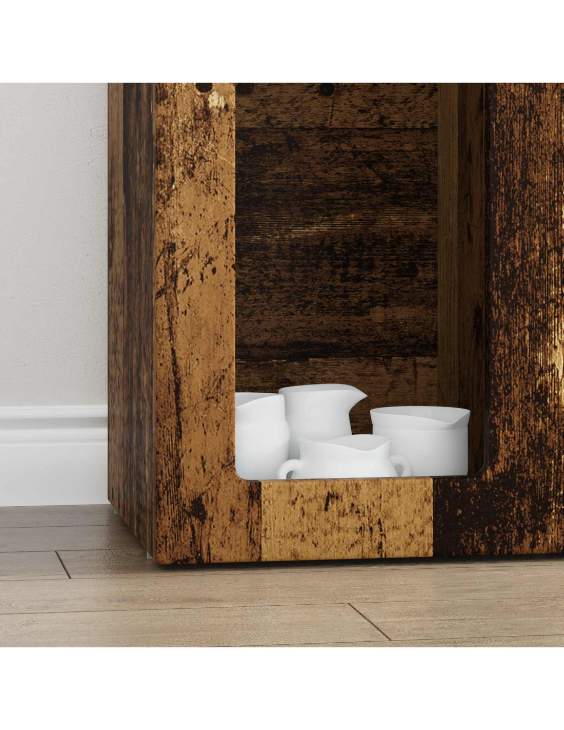 - Componenti inclusi: Il design è pensato per essere pratico, con ripiani in legno ingegnerizzato che offrono molto spazio per organizzare gli oggetti essenziali. Questi ripiani rinforzano la credenza, tenendo tutto in ordine e facilitando le riorganizzazioni quando necessario.