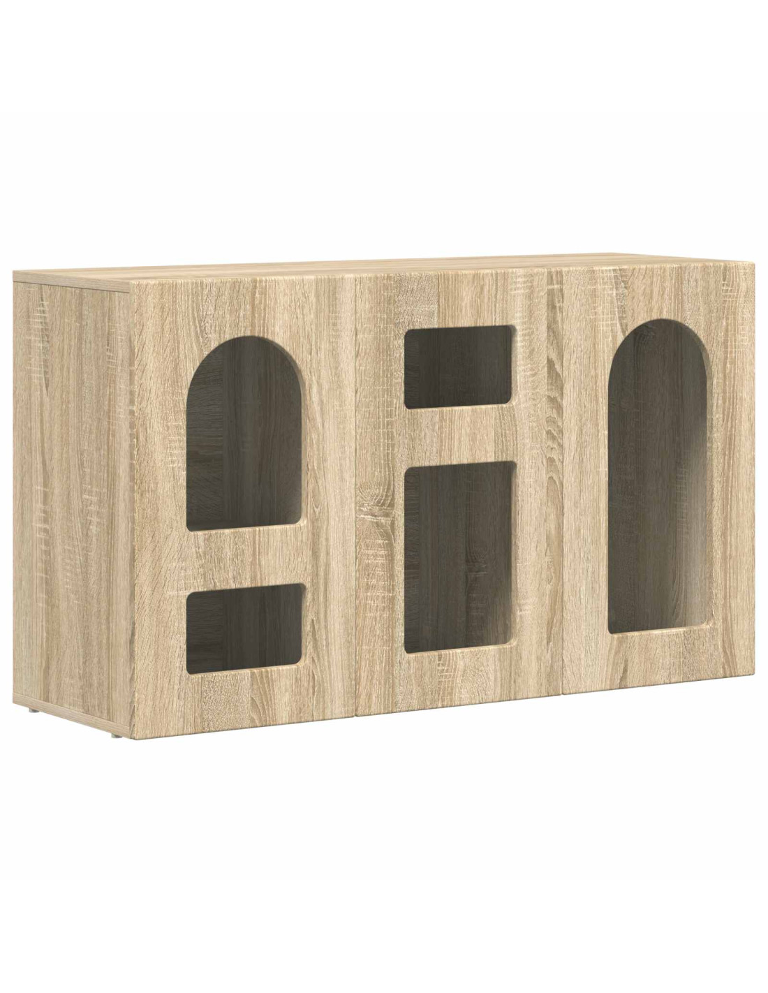- Materiale in Legno Ingegnerizzato: La credenza è fatta in legno ingegnerizzato di alta qualità, resiste bene a graffi e segni d'usura e ha una superficie liscia che la rende elegante.