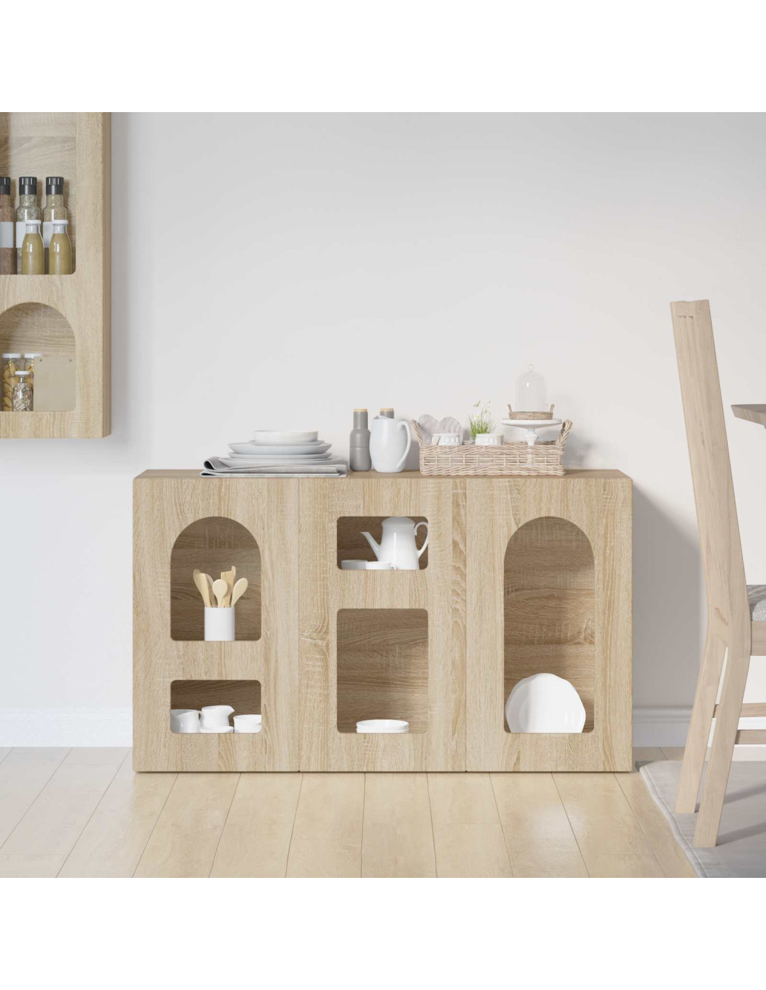 - Applicazione Versatile: Questa credenza si adatta facilmente a vari stili di arredo ed è perfetta per organizzare o esporre oggetti. È ideale per le sale da pranzo e i soggiorni.