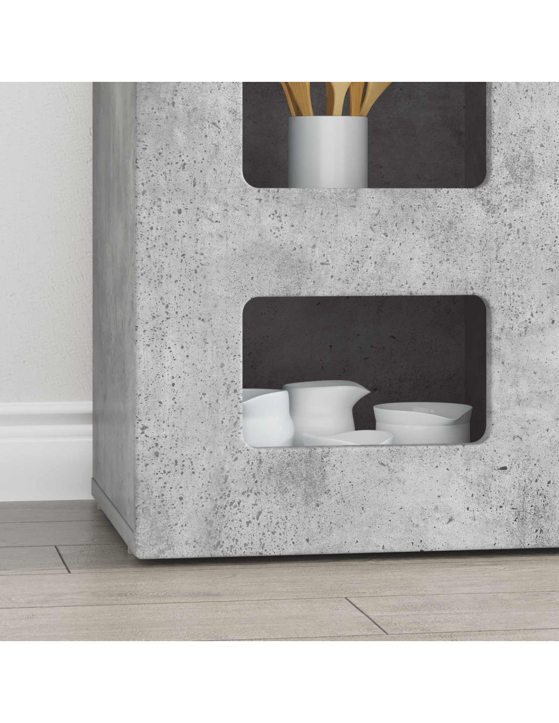 - Ripiani per Pannelli: I ripiani robusti offrono tanto spazio per riporre stoviglie e oggetti decorativi. Realizzati in legno ingegnerizzato, si mantengono in forma nel tempo.