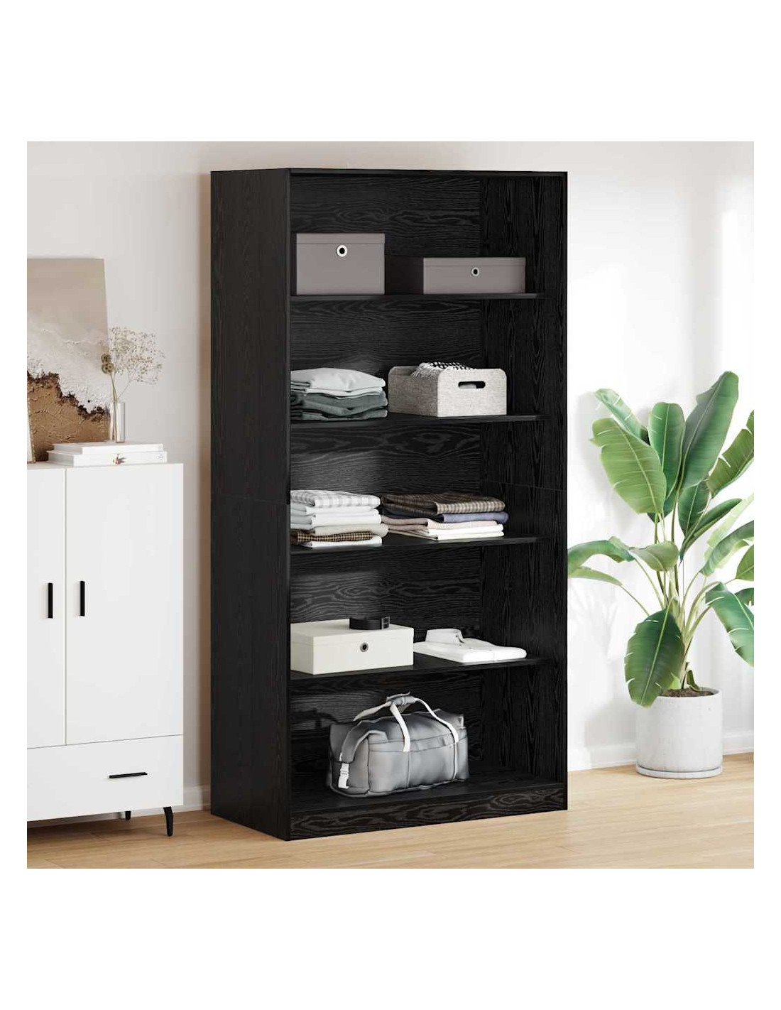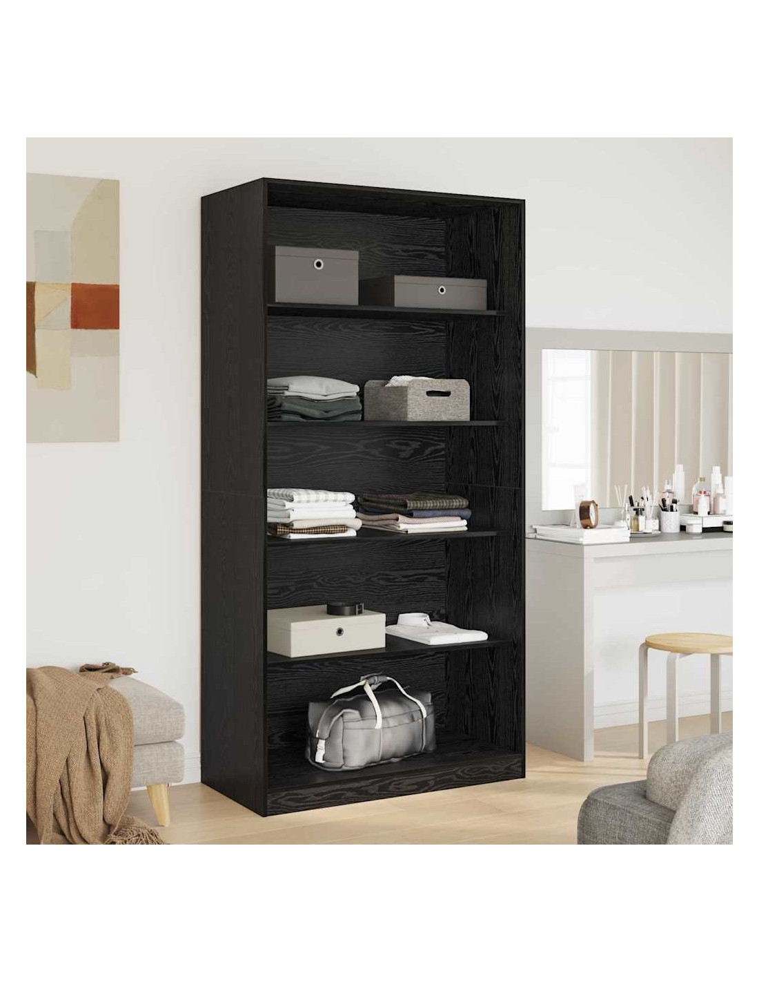- Legno ingegnerizzato Questo armadio è realizzato con legno ingegnerizzato, dandogli un look sofisticato e resistente. È fatto per resistere ai cambiamenti di temperatura e alle condizioni domestiche, quindi durerà nel tempo.