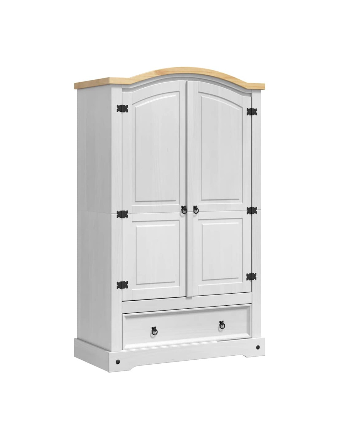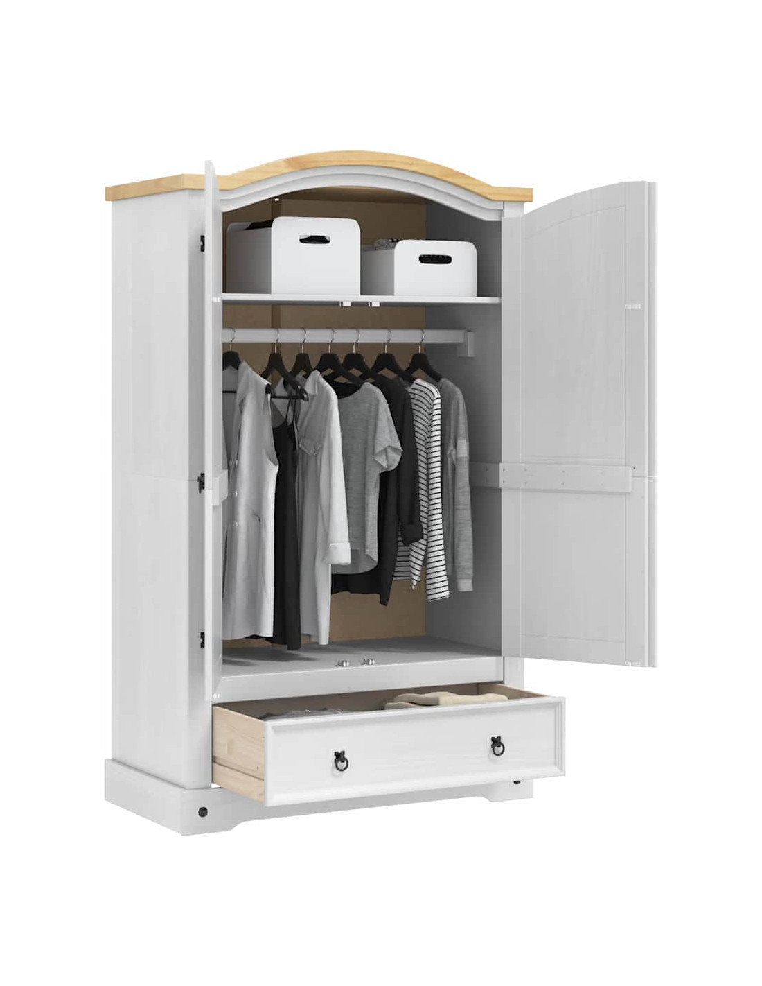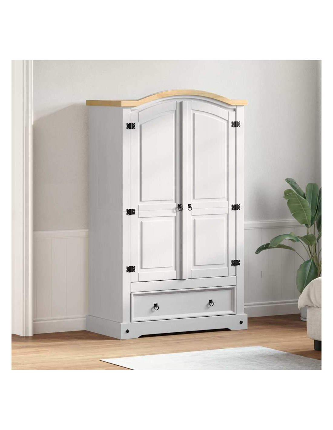 Questo armadio moderno unisce praticità e design, perfetto per aggiungere stile alla camera da letto o all'area per vestirsi. Realizzato in legno massello di pino, è robusto e si integra facilmente in vari stili di arredamento, offrendo sia funzionalità che un tocco estetico in ogni contesto.