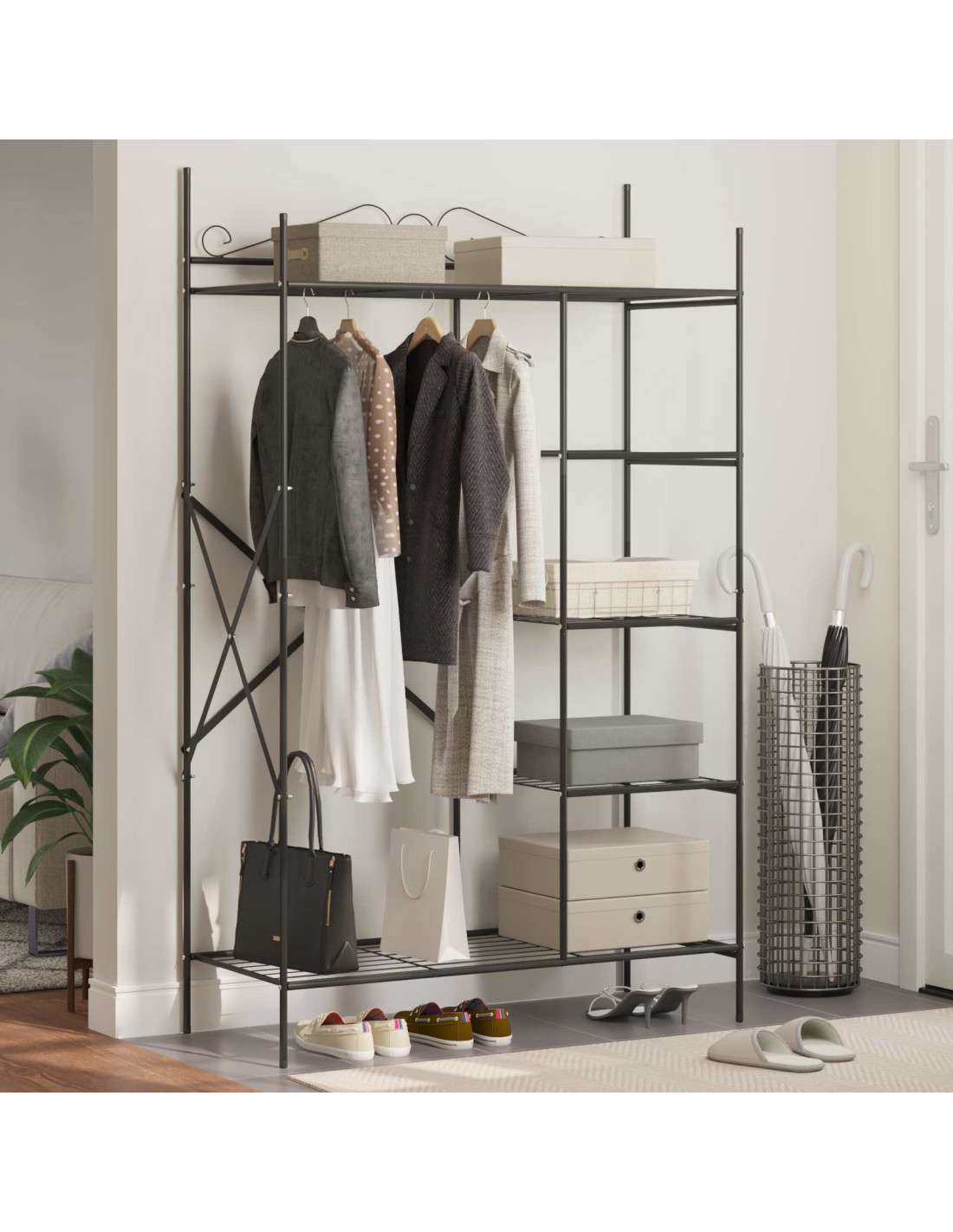 - Costruzione in metallo: Questo armadio aperto ha una solida struttura metallica che assicura durata e stabilità. Grazie alla finitura opaca verniciata, ha un look raffinato ed è resistente all'usura quotidiana. Questa robustezza garantisce che l'armadio rimanga saldo anche quando è pieno, rendendolo una soluzione di stoccaggio su cui puoi contare.