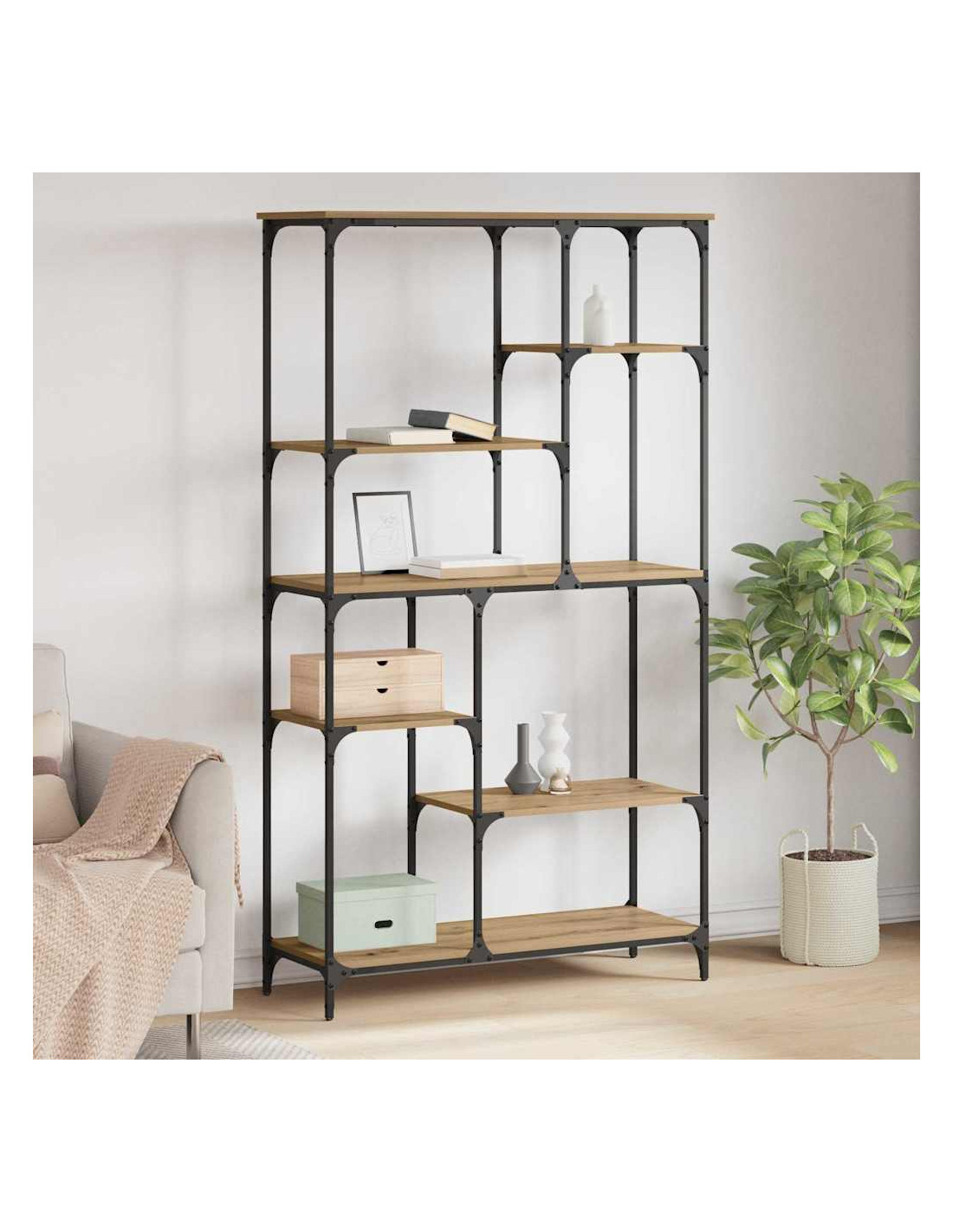 Questa libreria moderna in legno ingegnerizzato è la soluzione perfetta per aggiungere stile al tuo soggiorno e per riporre tutto in modo organizzato. Ha una forma rettangolare snella che si adatta bene alle case di oggi, dove si cerca sempre di combinare semplicità e funzionalità. È un vero e proprio punto di riferimento per chi ama i libri e la decorazione, con il suo design che unisce struttura e stile. I bordi incorniciati e la costruzione solida in legno ingegnerizzato portano una bella dose di eleganza e armonia, sia appoggiata a una parete che come divisore negli spazi open-space.