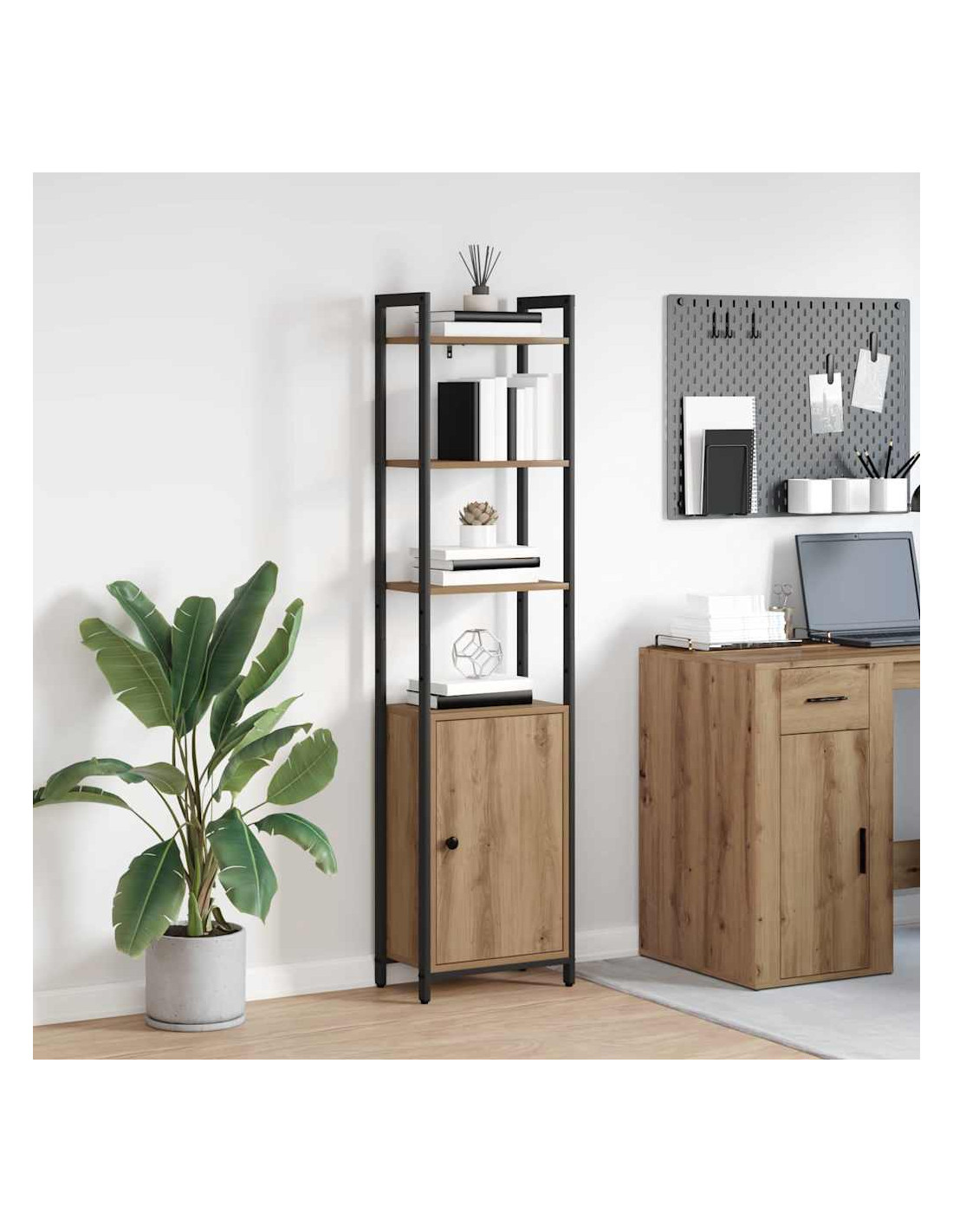 Questo libro armadio è un'opzione di stoccaggio stilosa con una bella vibra industriale, perfetta per il tuo ufficio o studio a casa. Il design si ispira ai loft urbani e mescola materiali diversi che gli danno un aspetto pratico ma chic. Non solo è bello, ma si inserisce alla grande in interni moderni, aggiungendo un bel tocco di carattere. È tutto sulla combinazione di funzione e stile, rendendolo perfetto per mostrare i tuoi libri e decorazioni preferiti.