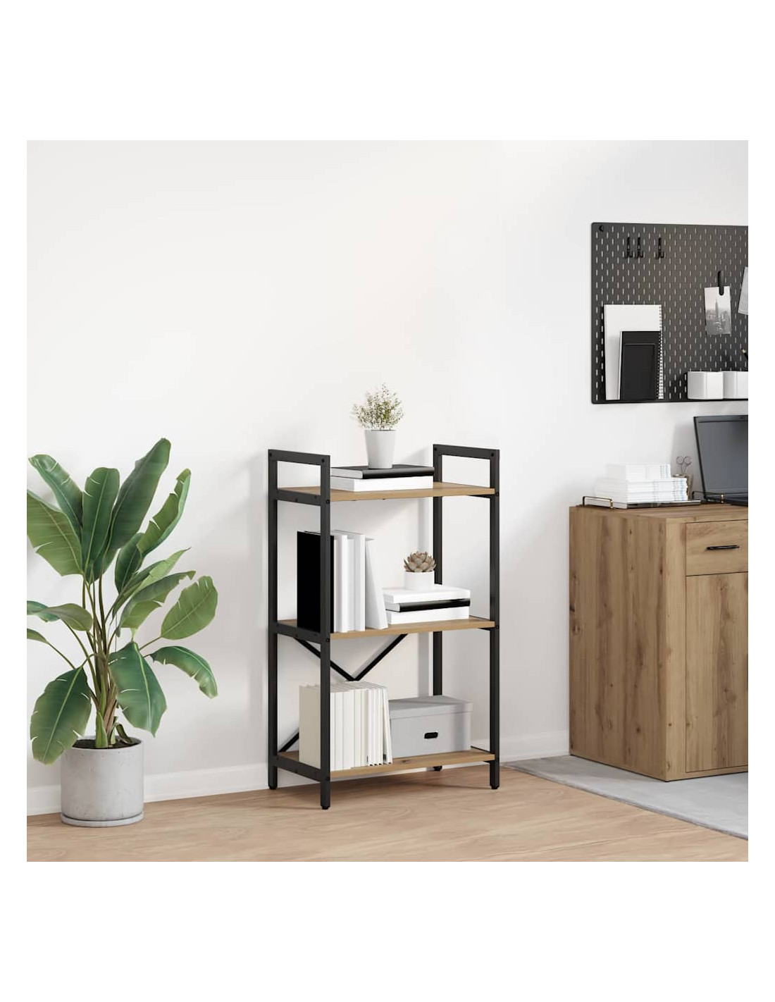 Questa libreria industriale arricchisce ogni spazio grazie alla sua costruzione robusta e al suo aspetto elegante. È ideale per ospitare libri, decorazioni e molto altro, offrendo tanto spazio in stanze come l’ufficio di casa o il soggiorno. Con il suo profilo audace e i materiali robusti, ha un design ispirato ai loft urbani. Perfetta per chi cerca un equilibrio tra funzionalità e stile, si adatta a diversi stili d'arredo.