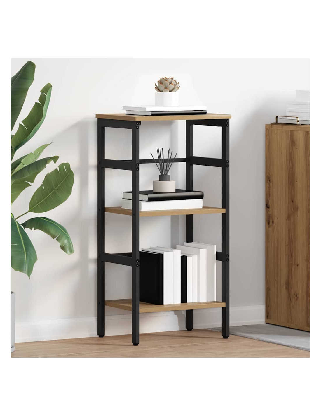 - Capacità di archiviazione ampia: Grazie ai numerosi ripiani in legno ingegnerizzato, questa libreria può contenere facilmente tanti libri, oggetti decorativi o articoli da ufficio. I ripiani sono facili da raggiungere, rendendo la tua organizzazione semplice e chic.