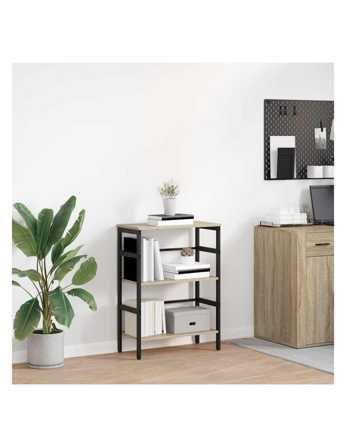 Questa libreria industriale è una vera chicca per chi ama il design moderno con un tocco di ruvido. Con linee nette e materiali grezzi, è l'aggiunta perfetta a home office, studi o soggiorni. Grazie alla sua solida struttura in legno ingegnerizzato e acciaio, unisce funzionalità e stile. I ripiani offrono spazio a volontà per libri, decorazioni e altre cose utili, mantenendo un aspetto sia elegante che pratico che si adatta a diverse atmosfere, dal urbano al rustico.