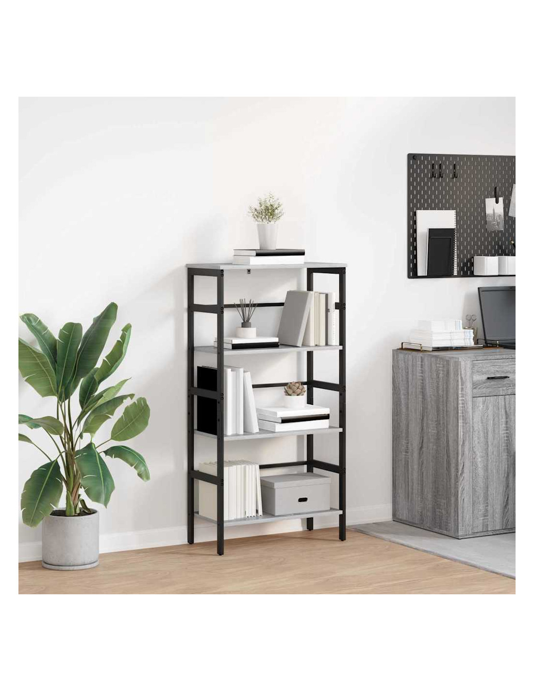 Questa libreria industriale è una vera chicca per chi ama il design moderno con un tocco di ruvido. Con linee nette e materiali grezzi, è l'aggiunta perfetta a home office, studi o soggiorni. Grazie alla sua solida struttura in legno ingegnerizzato e acciaio, unisce funzionalità e stile. I ripiani offrono spazio a volontà per libri, decorazioni e altre cose utili, mantenendo un aspetto sia elegante che pratico che si adatta a diverse atmosfere, dal urbano al rustico.