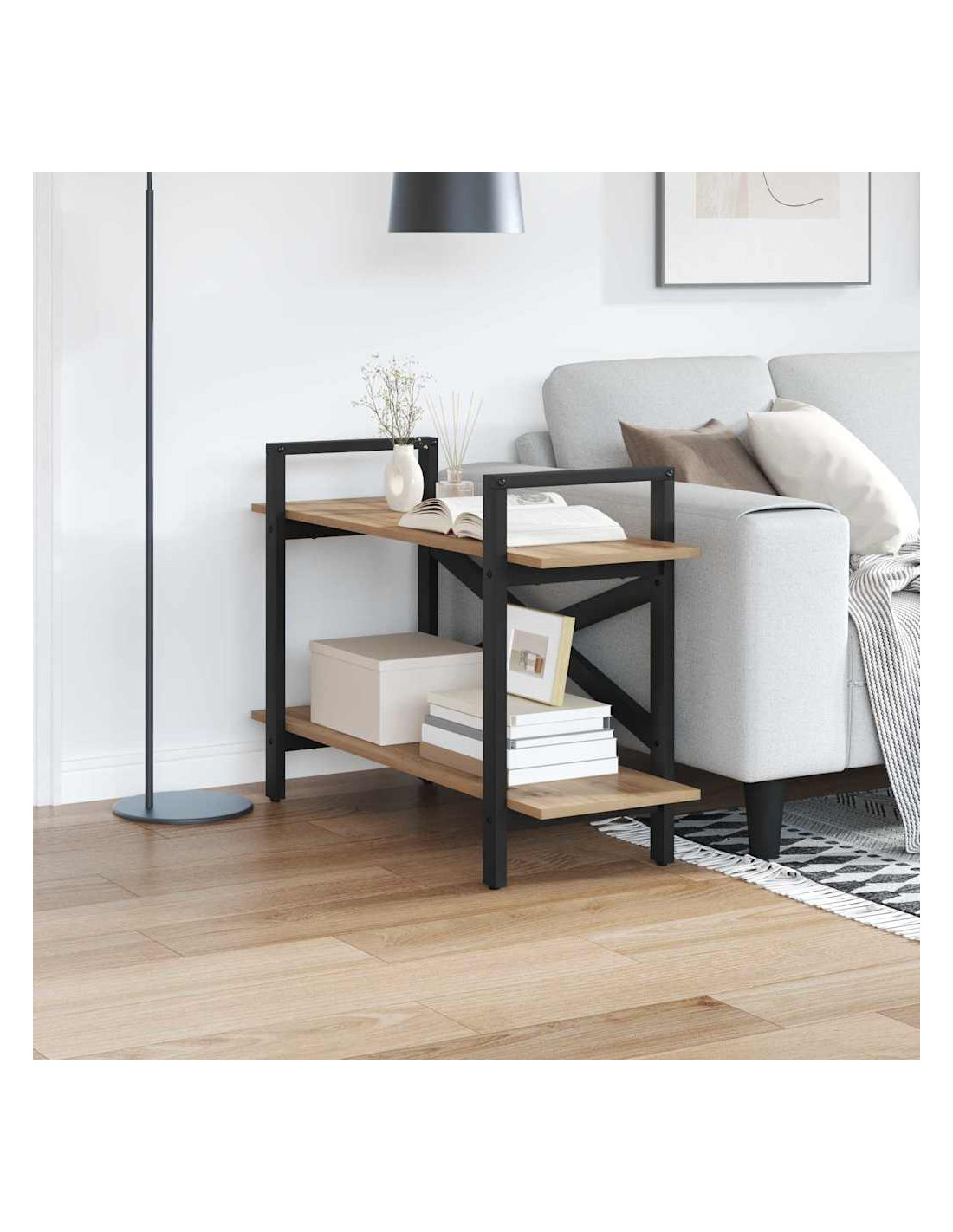 La libreria industriale unisce stile e funzionalità, adattandosi a vari spazi, dagli uffici domestici accoglienti ai moderni lounge urbani. Con il suo design autoportante e rettangolare, offre un look robusto e tanto spazio per libri e decorazioni.
