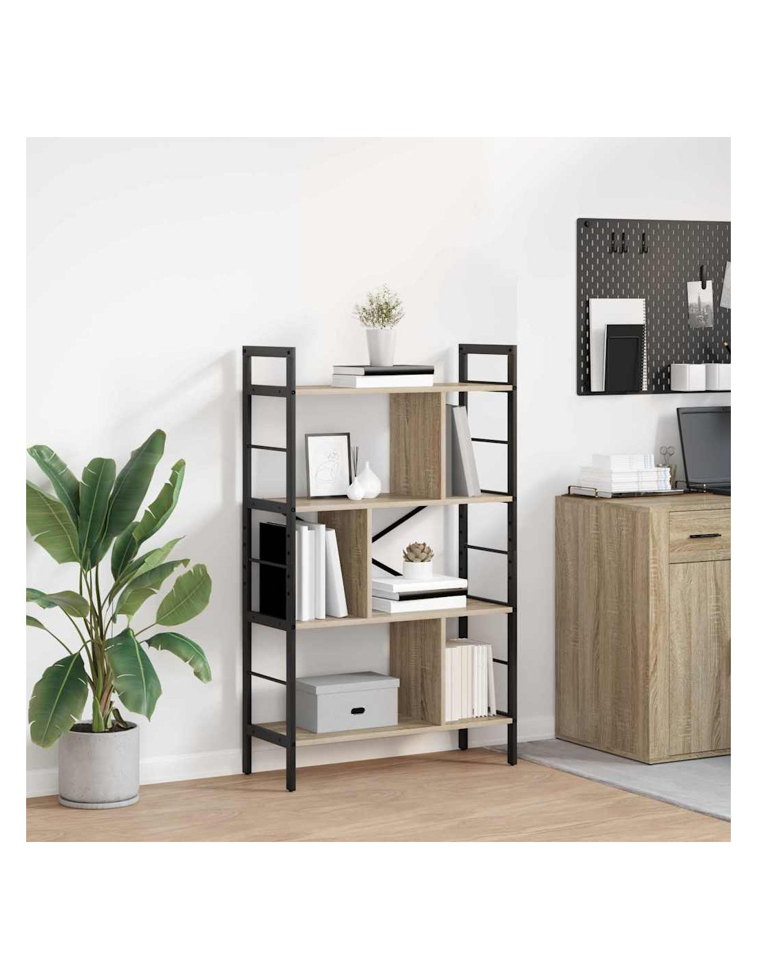 Questa libreria industriale è l'ideale per chi cerca un tocco moderno con ripiani in legno ingegnerizzato e un robusto telaio in acciaio. Si integra benissimo in spazi abitativi urbani, aggiungendo un fascino da loft. È perfetta per soggiorni, uffici o studi, e ti offre un'ottima occasione per mostrare libri e decorazioni.
