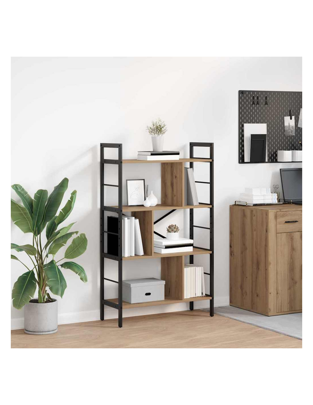 Questa libreria industriale è l'ideale per chi cerca un tocco moderno con ripiani in legno ingegnerizzato e un robusto telaio in acciaio. Si integra benissimo in spazi abitativi urbani, aggiungendo un fascino da loft. È perfetta per soggiorni, uffici o studi, e ti offre un'ottima occasione per mostrare libri e decorazioni.