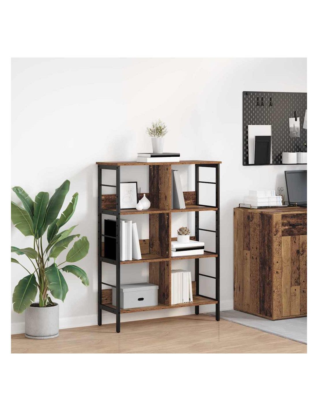 Questa libreria industriale unisce stile e funzionalità in modo super pratico. È pensata per chi ama il minimalismo e la durabilità. La sua forma rettangolare è perfetta per qualsiasi ambiente, che sia un soggiorno, uno studio o un ufficio, e offre una soluzione di stoccaggio versatile. Ha un look semplice ma accattivante che dà un tocco moderno e ti invita a pensare a come usarla per riporre libri o mostrare le tue decorazioni preferite.