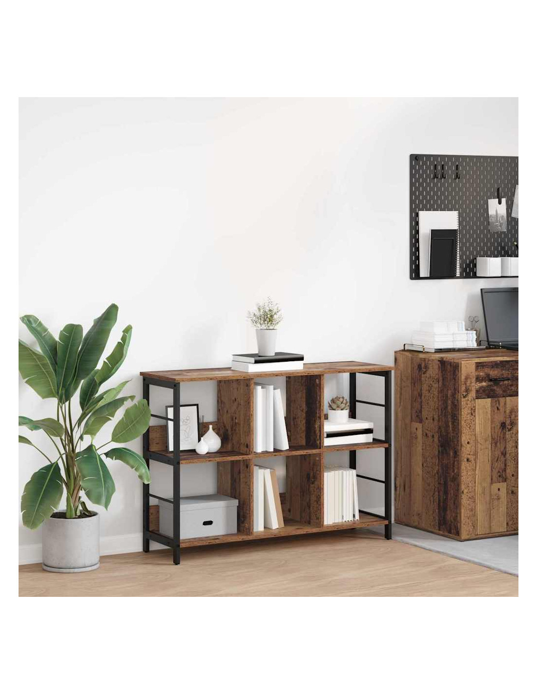 Questa libreria industriale unisce stile e funzionalità in modo super pratico. È pensata per chi ama il minimalismo e la durabilità. La sua forma rettangolare è perfetta per qualsiasi ambiente, che sia un soggiorno, uno studio o un ufficio, e offre una soluzione di stoccaggio versatile. Ha un look semplice ma accattivante che dà un tocco moderno e ti invita a pensare a come usarla per riporre libri o mostrare le tue decorazioni preferite.