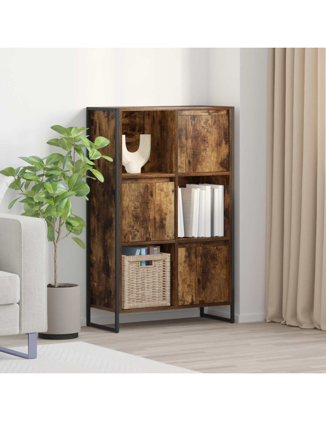 - Caratteristiche / Funzione / Design: Questa libreria è pensata per essere un punto focale nel soggiorno, combinando funzionalità e design. La costruzione robusta assicura durata nel tempo, rendendola una soluzione di archiviazione affidabile. Il suo stile industriale è accattivante e si adatta perfettamente a vari stili di arredamento.
