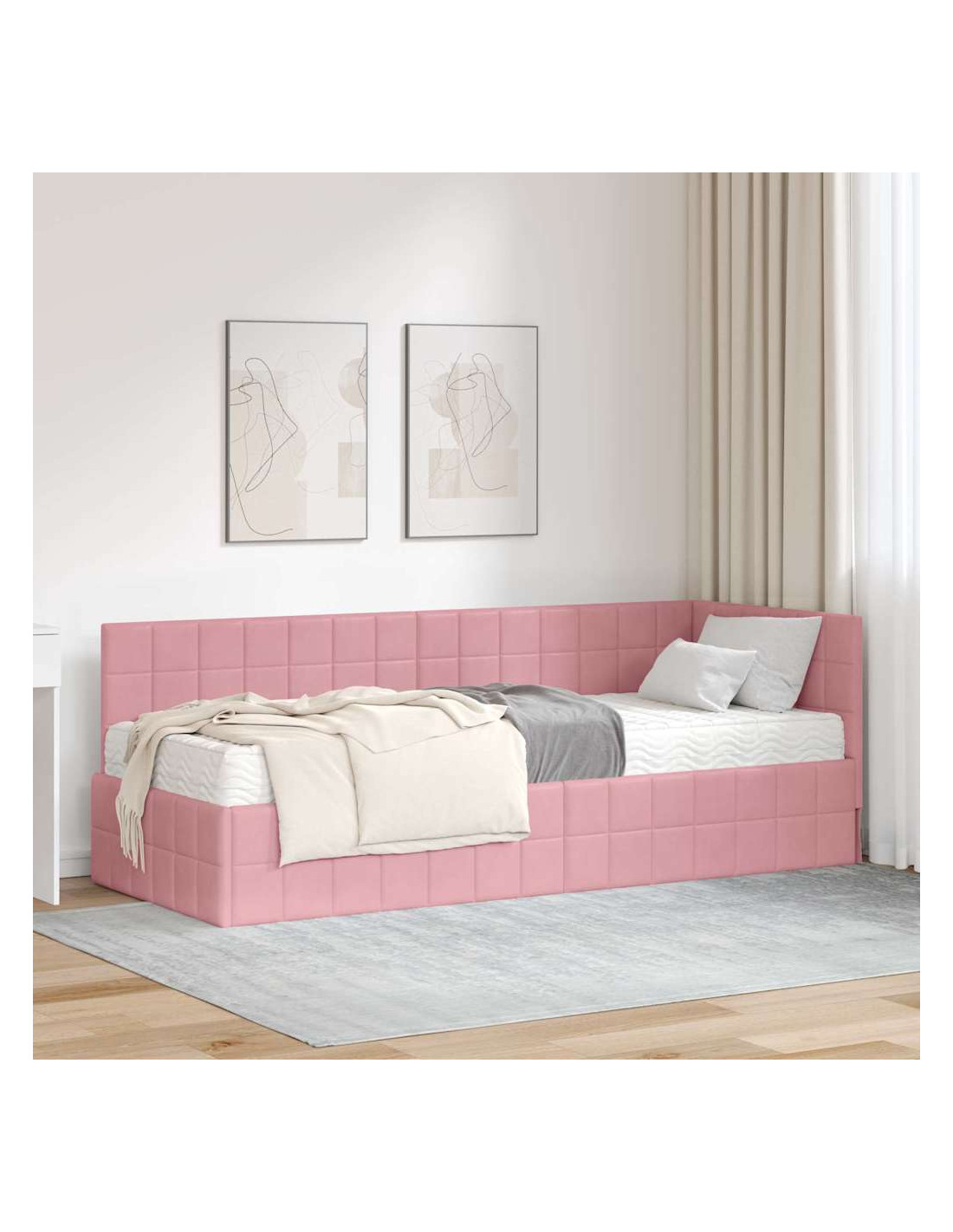 Questo letto angolare in velluto con materasso è l'ideale per chi cerca eleganza e comfort. La sua forma elegante e il velluto ricco lo rendono perfetto in ogni arredamento. Con un telaio a piattaforma robusto, offre una base sicura per un sonno sereno. Immagina di sdraiarti su un materasso in schiuma a media rigidità che accoglie ogni posizione per notti riposanti. La testiera a parete non solo risparmia spazio, ma migliora anche il design, rendendolo un punto di riferimento per il relax.