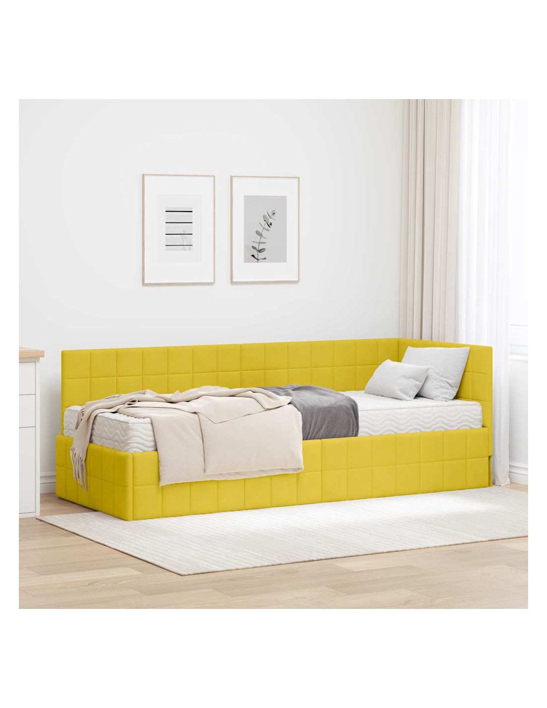 Questo letto angolare in velluto con materasso è l'ideale per chi cerca eleganza e comfort. La sua forma elegante e il velluto ricco lo rendono perfetto in ogni arredamento. Con un telaio a piattaforma robusto, offre una base sicura per un sonno sereno. Immagina di sdraiarti su un materasso in schiuma a media rigidità che accoglie ogni posizione per notti riposanti. La testiera a parete non solo risparmia spazio, ma migliora anche il design, rendendolo un punto di riferimento per il relax.