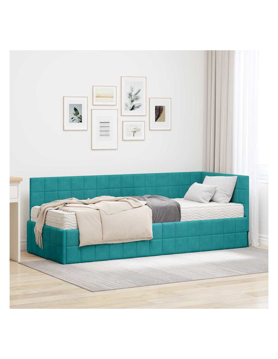 Questo letto angolare in velluto con materasso è l'ideale per chi cerca eleganza e comfort. La sua forma elegante e il velluto ricco lo rendono perfetto in ogni arredamento. Con un telaio a piattaforma robusto, offre una base sicura per un sonno sereno. Immagina di sdraiarti su un materasso in schiuma a media rigidità che accoglie ogni posizione per notti riposanti. La testiera a parete non solo risparmia spazio, ma migliora anche il design, rendendolo un punto di riferimento per il relax.
