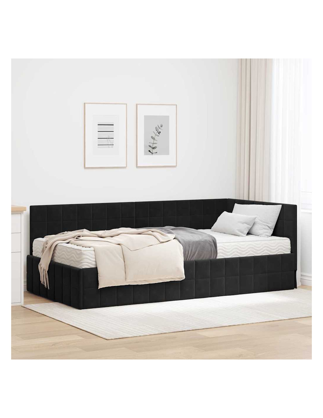 Questo letto angolare in velluto con materasso è l'ideale per chi cerca eleganza e comfort. La sua forma elegante e il velluto ricco lo rendono perfetto in ogni arredamento. Con un telaio a piattaforma robusto, offre una base sicura per un sonno sereno. Immagina di sdraiarti su un materasso in schiuma a media rigidità che accoglie ogni posizione per notti riposanti. La testiera a parete non solo risparmia spazio, ma migliora anche il design, rendendolo un punto di riferimento per il relax.