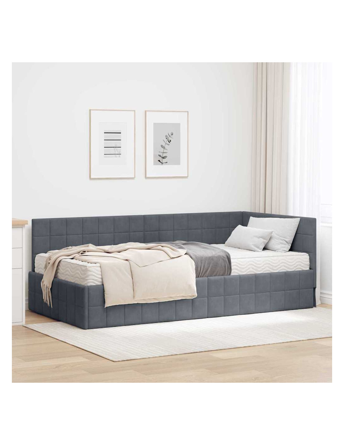 Questo letto angolare in velluto con materasso è l'ideale per chi cerca eleganza e comfort. La sua forma elegante e il velluto ricco lo rendono perfetto in ogni arredamento. Con un telaio a piattaforma robusto, offre una base sicura per un sonno sereno. Immagina di sdraiarti su un materasso in schiuma a media rigidità che accoglie ogni posizione per notti riposanti. La testiera a parete non solo risparmia spazio, ma migliora anche il design, rendendolo un punto di riferimento per il relax.
