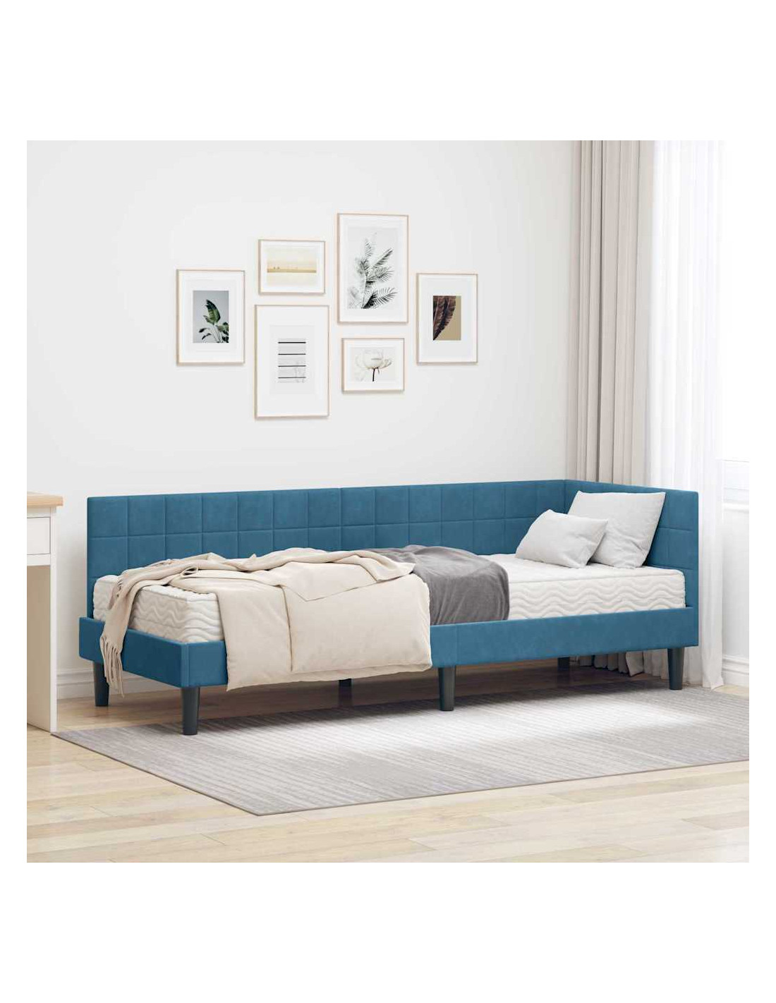 Questo letto angolare combina stile e praticità, adattandosi perfettamente a un arredamento moderno. La sua forma rettangolare è accompagnata da una finitura in velluto che aggiunge un tocco di classe alla tua camera.