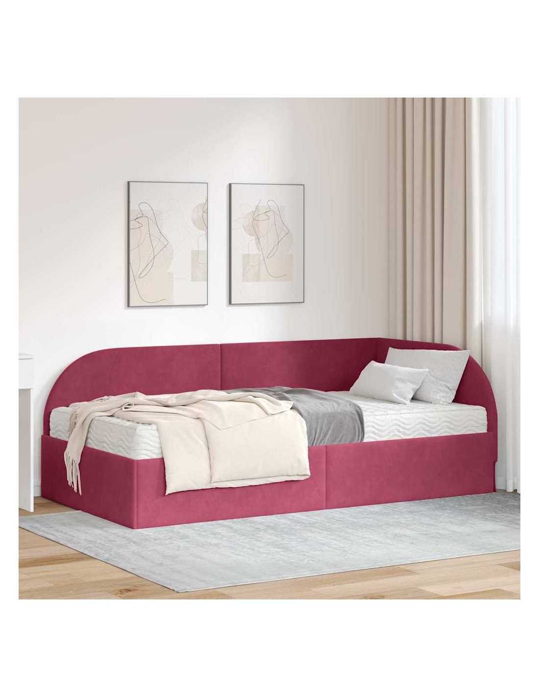 Questo letto angolare in velluto con materasso combina eleganza e funzionalità, risultando un pezzo d'effetto in qualsiasi camera da letto. La sua forma rettangolare minimale si adatta a vari stili d'interni, ideale per aggiungere un tocco di raffinatezza senza rinunciare a una buona notte di sonno. La texture morbida del velluto offre un'esperienza al tatto unica, trasformandolo in un vero rifugio di comfort, perfetto per una suite padronale o una camera per gli ospiti.