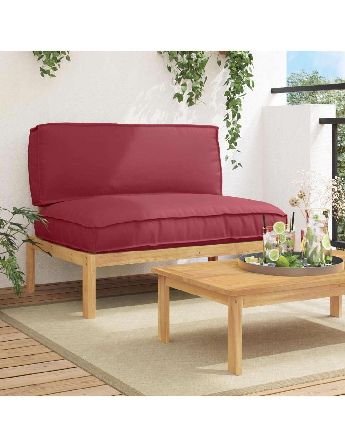 - Materiali resistenti alle intemperie: Questo set è realizzato in legno massello di acacia, noto per la sua robustezza e resistenza alle condizioni atmosferiche. La finitura oleata mette in risalto la bellezza del legno, garantendo durabilità. I cuscini in tessuto Oxford resistono all'usura, mantenendo il set bello e confortevole anche nel tempo.