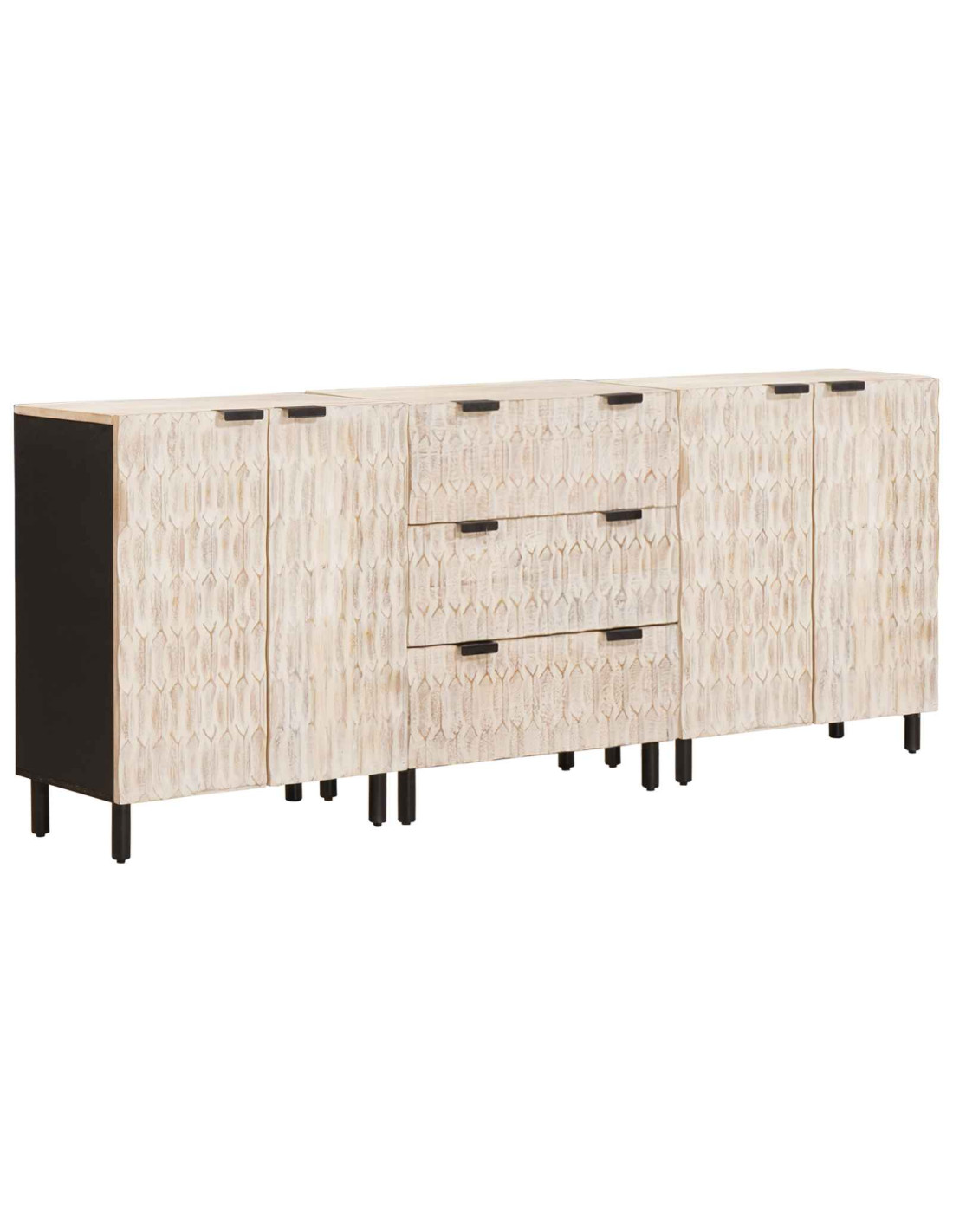 - Materiale Premium: Realizzato in legno di mango massello, il sideboard non solo porta calore ed eleganza, ma è anche molto resistente. Questo legno è noto per la sua forza ed è perfetto per i mobili che devono durare nel tempo, con una venatura ricca che rende ogni spazio più affascinante.