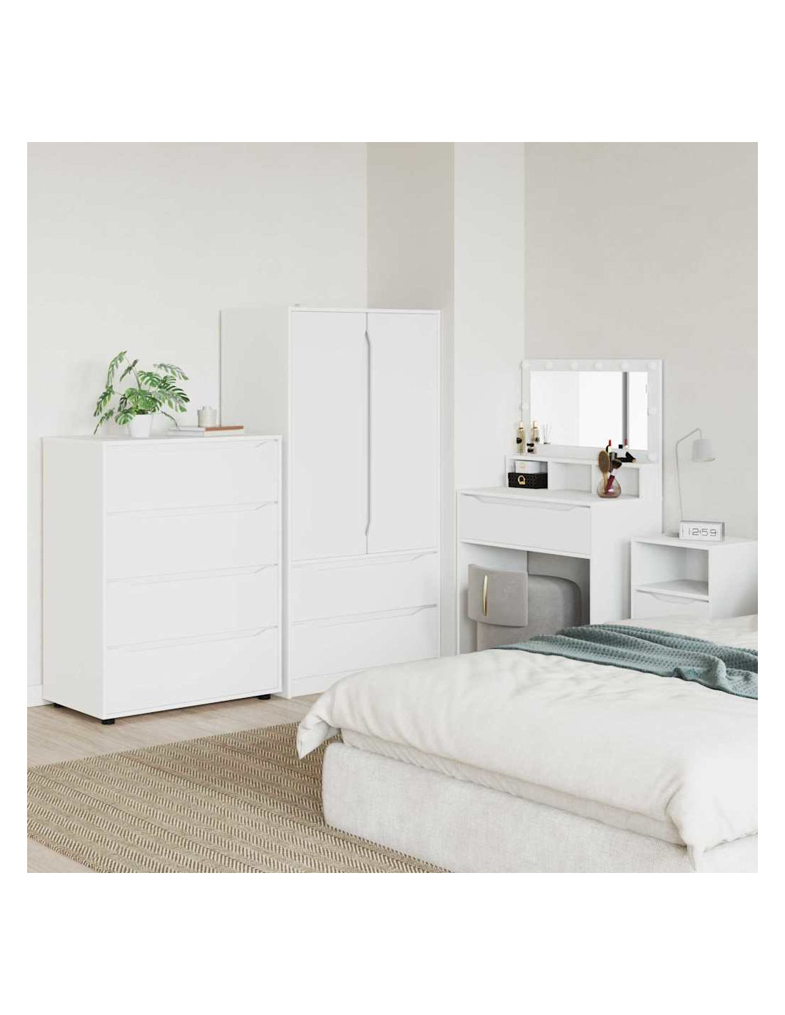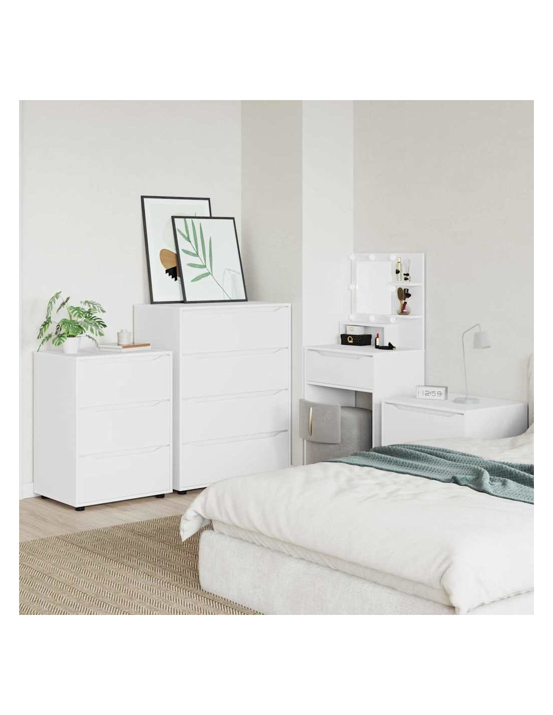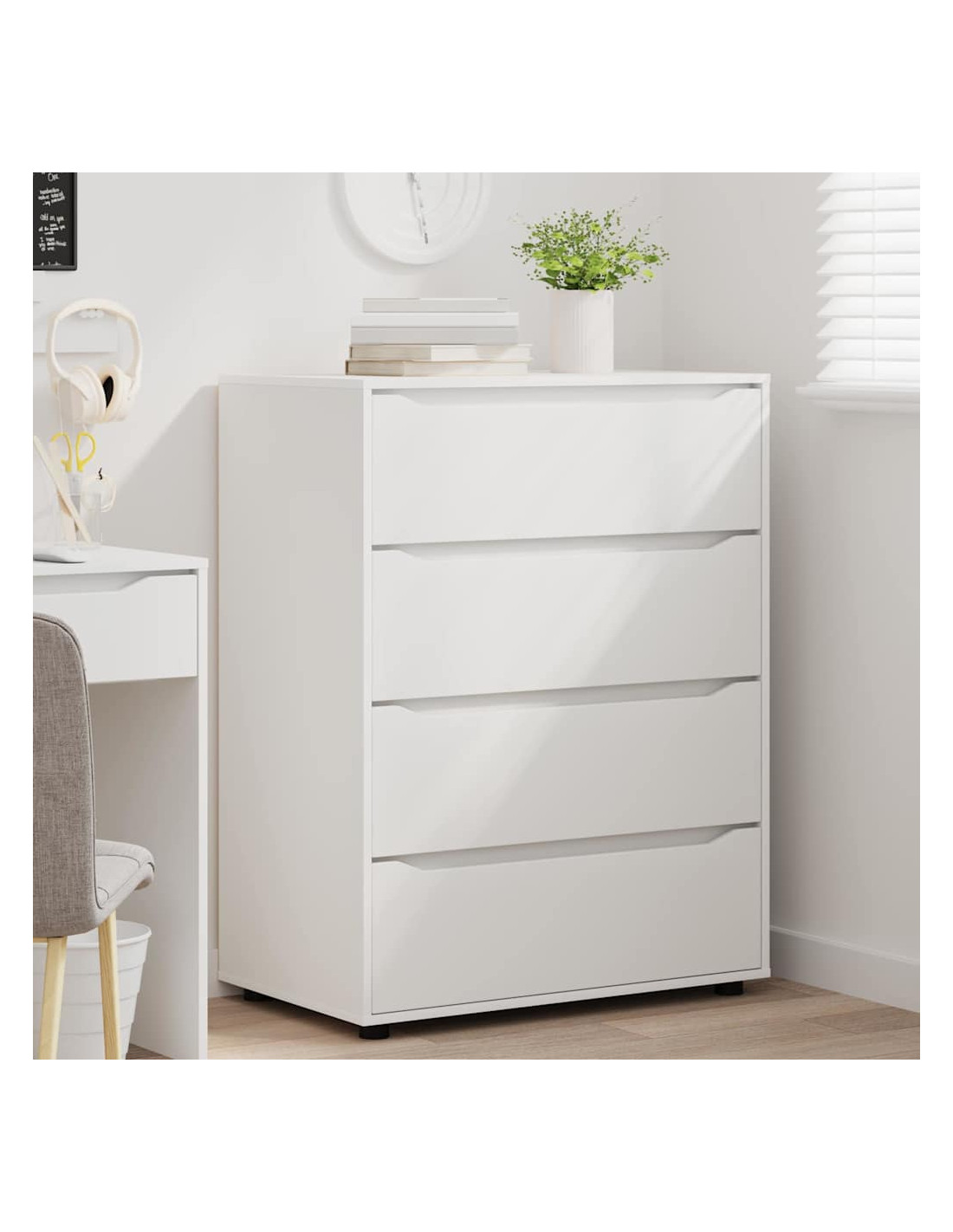 Questo mobile di stoccaggio è progettato per unire un design minimalista alla praticità. Si adatta facilmente a camere da letto e soggiorni, e la sua forma rettangolare è realizzata in legno ingegnerizzato con una superficie liscia, perfetta per case moderne. La sua estetica semplice è perfetta per chi cerca eleganza e funzionalità, con cassetti che offrono ampio spazio di organizzazione.