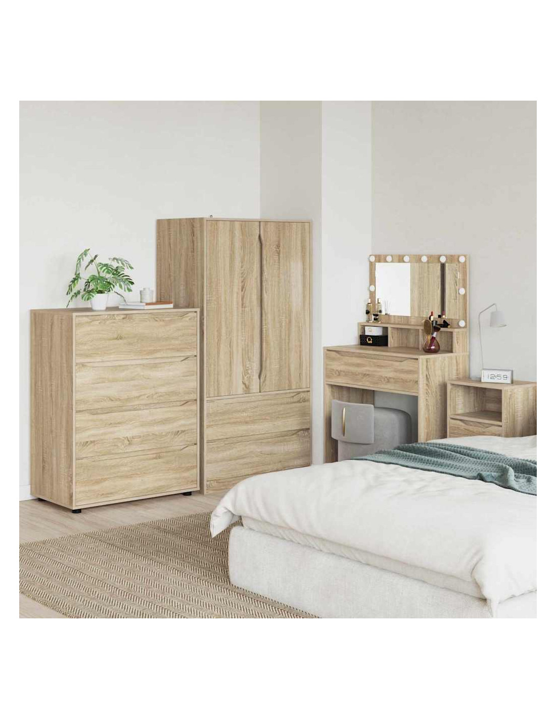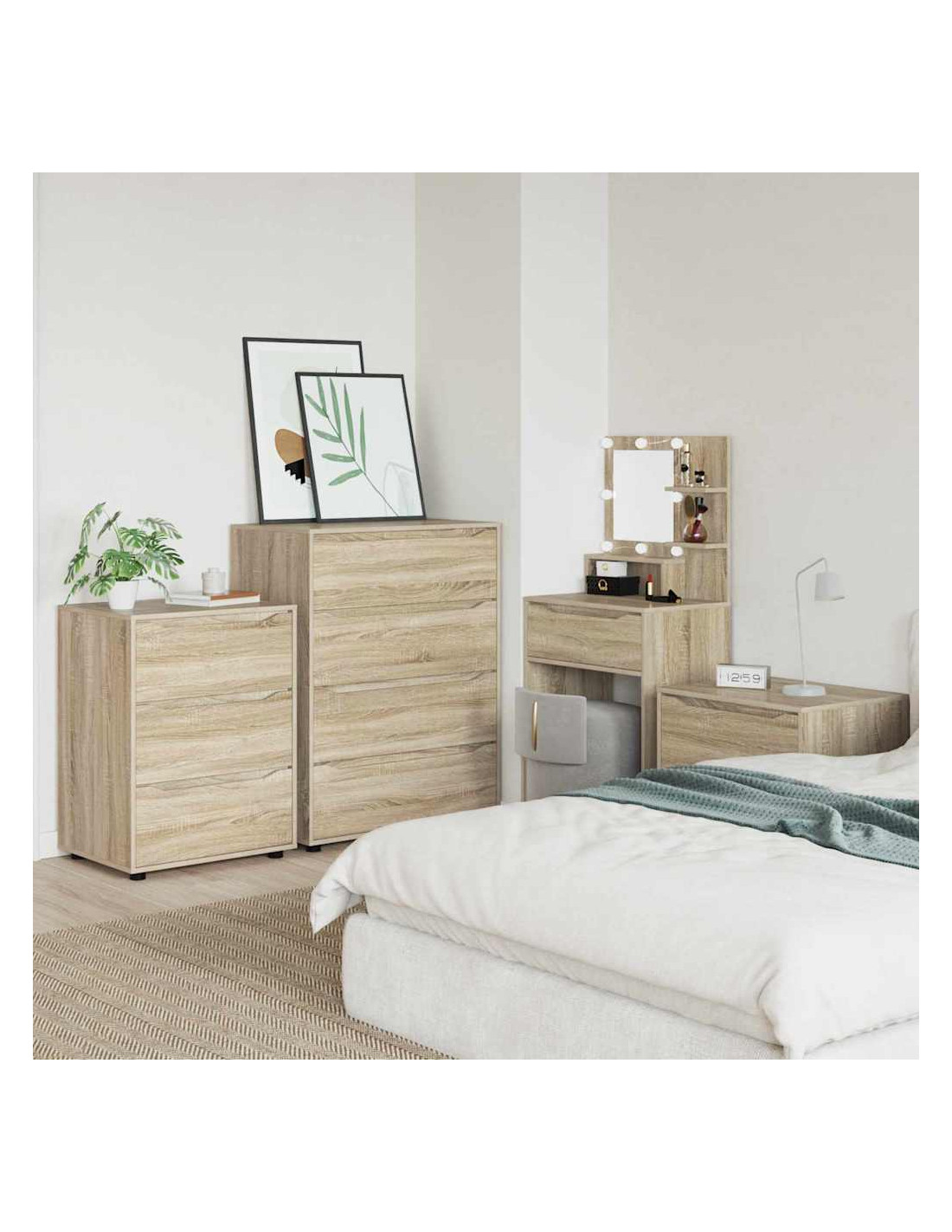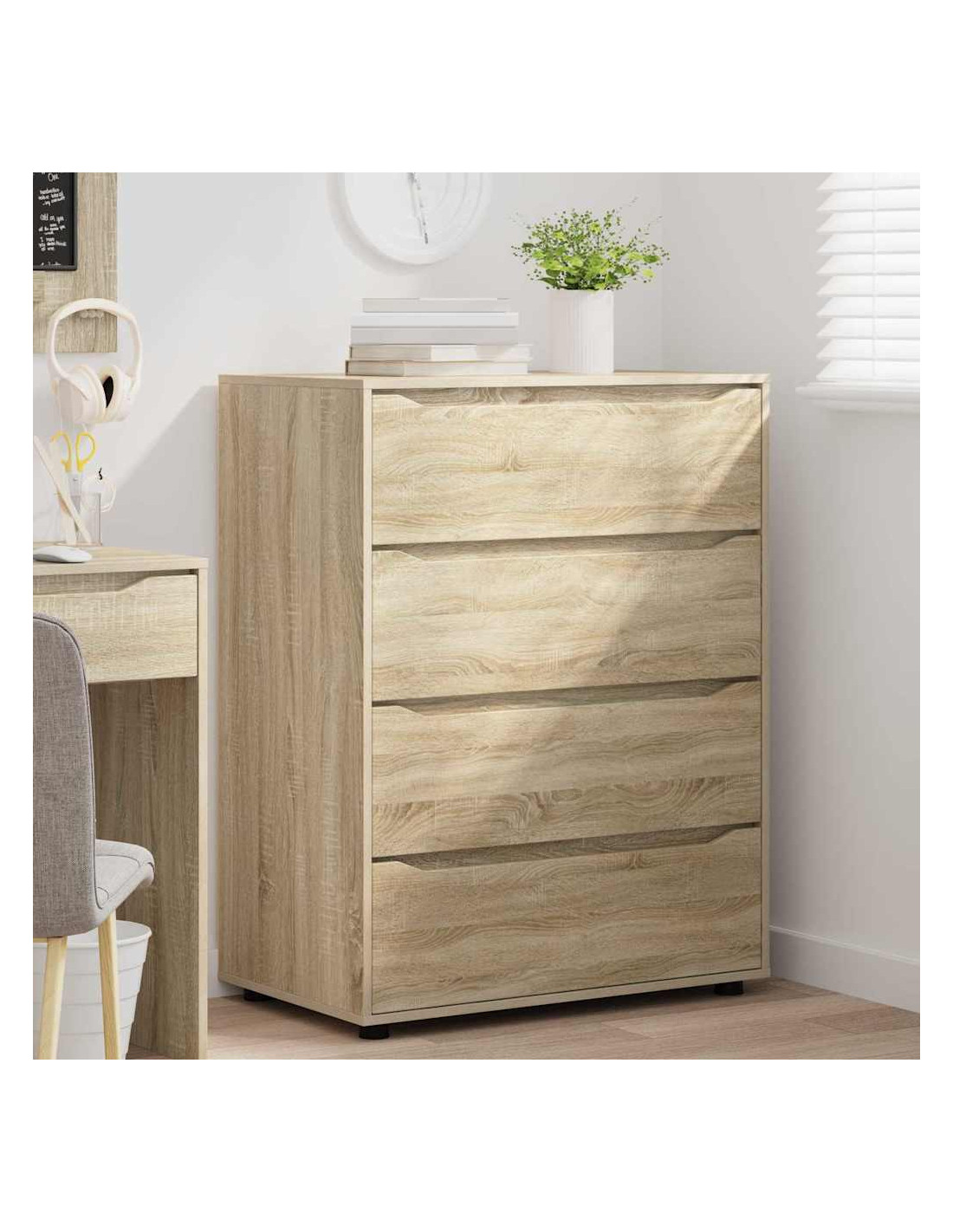 Questo mobile di stoccaggio è progettato per unire un design minimalista alla praticità. Si adatta facilmente a camere da letto e soggiorni, e la sua forma rettangolare è realizzata in legno ingegnerizzato con una superficie liscia, perfetta per case moderne. La sua estetica semplice è perfetta per chi cerca eleganza e funzionalità, con cassetti che offrono ampio spazio di organizzazione.