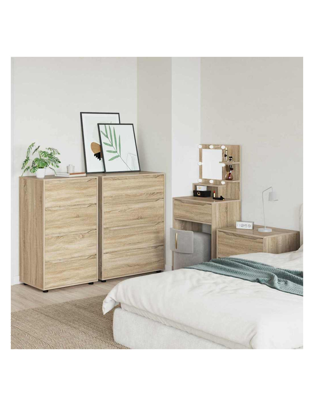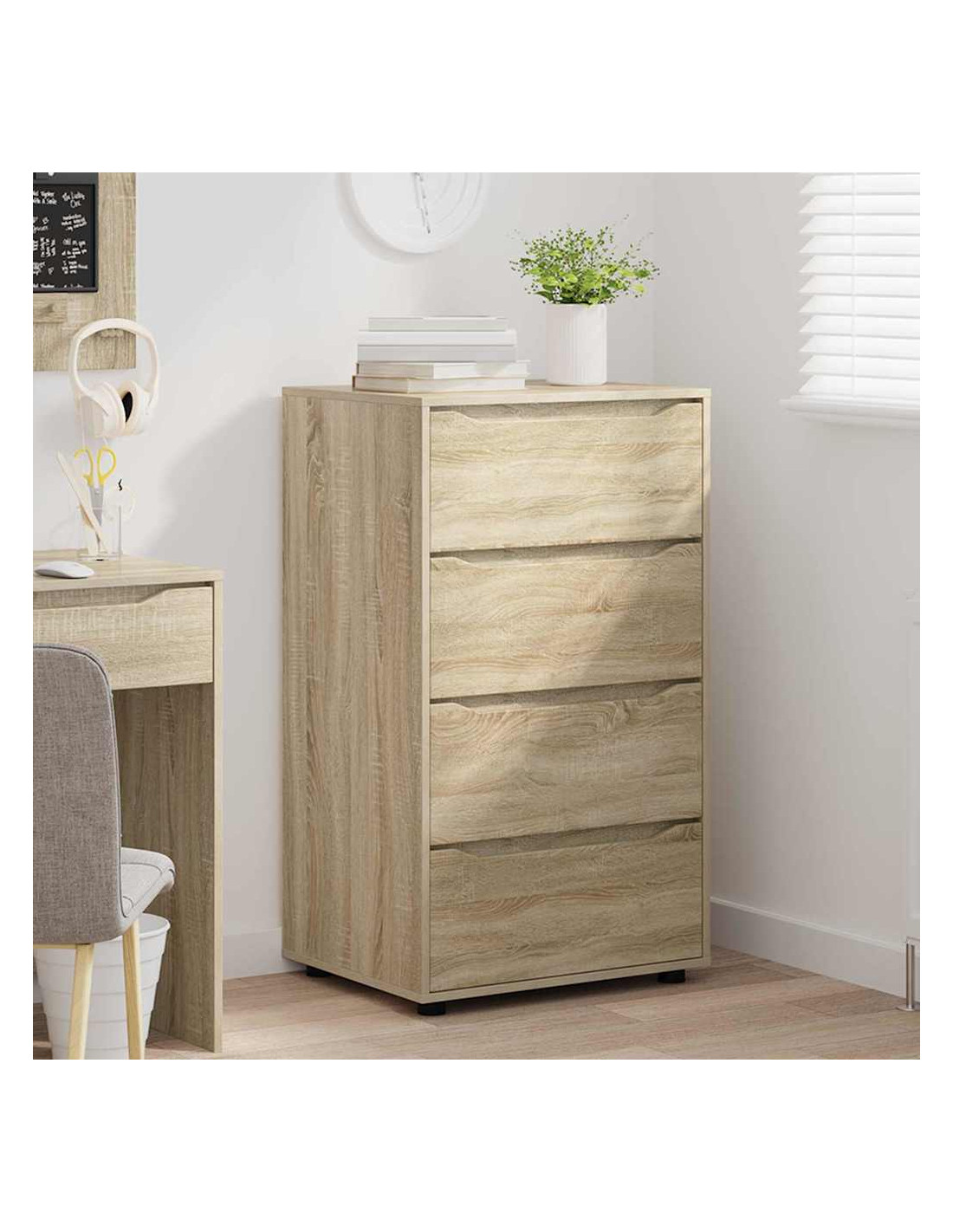 Questo mobile di stoccaggio è progettato per unire un design minimalista alla praticità. Si adatta facilmente a camere da letto e soggiorni, e la sua forma rettangolare è realizzata in legno ingegnerizzato con una superficie liscia, perfetta per case moderne. La sua estetica semplice è perfetta per chi cerca eleganza e funzionalità, con cassetti che offrono ampio spazio di organizzazione.