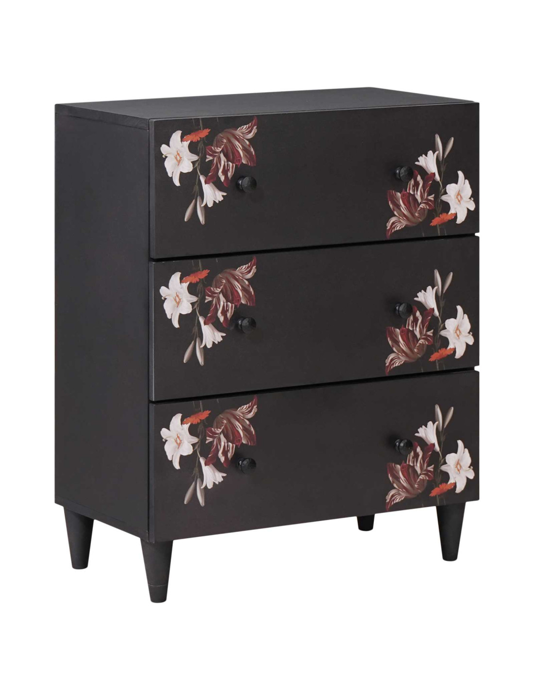 - Dettagli artistici: Questo armadio si distingue per il suo motivo floreale che attira l’attenzione e aggiunge un tocco decorativo, mentre le manopole in ottone bagnano il design di eleganza, rendendolo piacevole da vedere e da toccare.