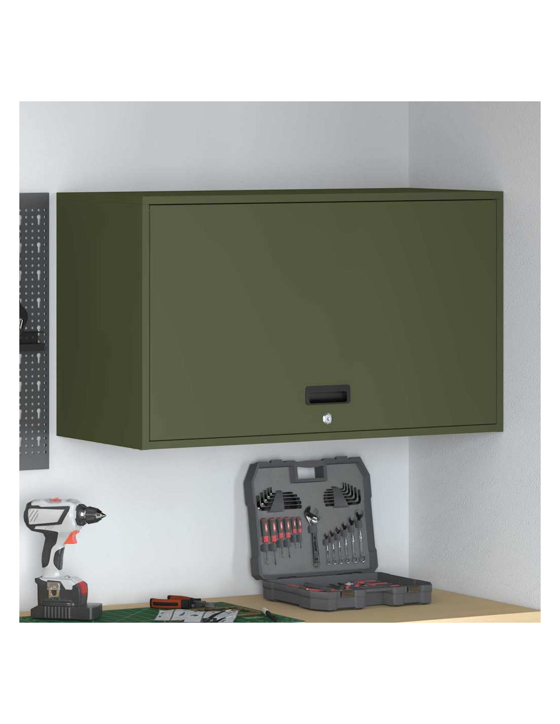 L'Armadio a Parete per Garage è pensato per soddisfare tutte le tue esigenze di stoccaggio senza rinunciare a un design elegante e moderno. Si integra perfettamente in qualsiasi ambiente interno grazie alle sue linee pulite e alla semplicità. Il montaggio a parete consente di risparmiare spazio e, grazie alla robustezza dell'acciaio, i tuoi oggetti saranno sempre al sicuro.