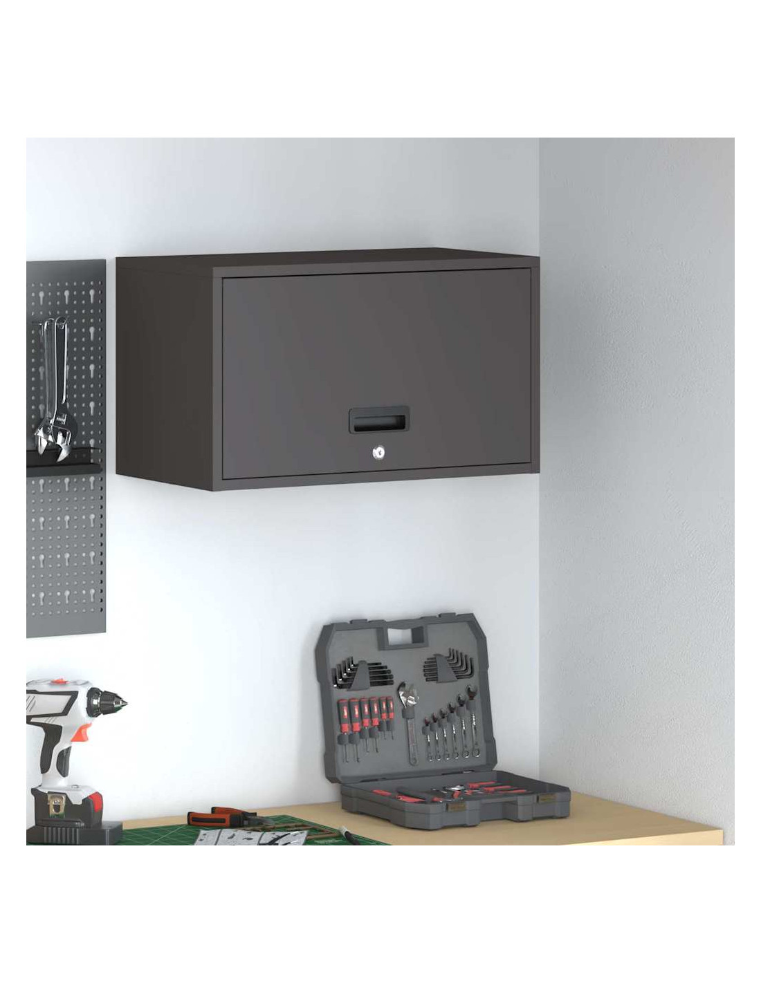 L'Armadio a Parete per Garage è pensato per soddisfare tutte le tue esigenze di stoccaggio senza rinunciare a un design elegante e moderno. Si integra perfettamente in qualsiasi ambiente interno grazie alle sue linee pulite e alla semplicità. Il montaggio a parete consente di risparmiare spazio e, grazie alla robustezza dell'acciaio, i tuoi oggetti saranno sempre al sicuro.