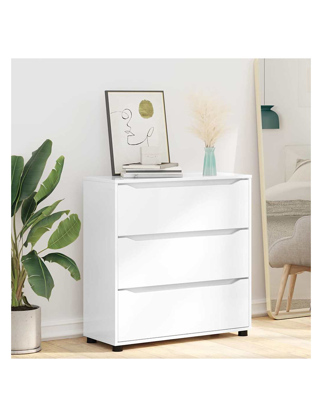 Questo mobile di stoccaggio è progettato per unire un design minimalista alla praticità. Si adatta facilmente a camere da letto e soggiorni, e la sua forma rettangolare è realizzata in legno ingegnerizzato con una superficie liscia, perfetta per case moderne. La sua estetica semplice è perfetta per chi cerca eleganza e funzionalità, con cassetti che offrono ampio spazio di organizzazione.