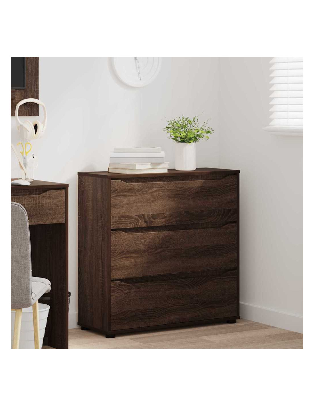 Questo mobile di stoccaggio è progettato per unire un design minimalista alla praticità. Si adatta facilmente a camere da letto e soggiorni, e la sua forma rettangolare è realizzata in legno ingegnerizzato con una superficie liscia, perfetta per case moderne. La sua estetica semplice è perfetta per chi cerca eleganza e funzionalità, con cassetti che offrono ampio spazio di organizzazione.