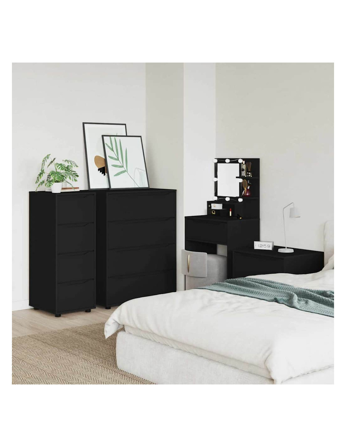 Questo mobile di stoccaggio è progettato per unire un design minimalista alla praticità. Si adatta facilmente a camere da letto e soggiorni, e la sua forma rettangolare è realizzata in legno ingegnerizzato con una superficie liscia, perfetta per case moderne. La sua estetica semplice è perfetta per chi cerca eleganza e funzionalità, con cassetti che offrono ampio spazio di organizzazione.