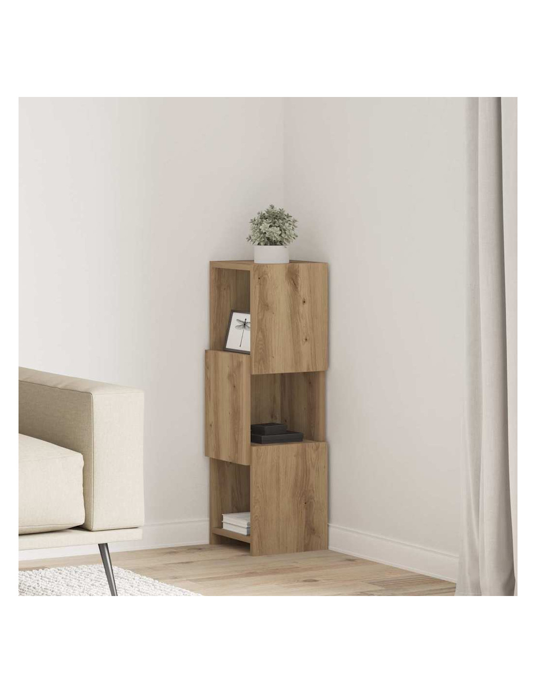- Design angolare salvaspazio: Questo mobile angolare moderno ha scaffali progettati per sfruttare al massimo gli spazi piccoli. Ideale per chi ha poco spazio ma non vuole rinunciare a stile e funzionalità.