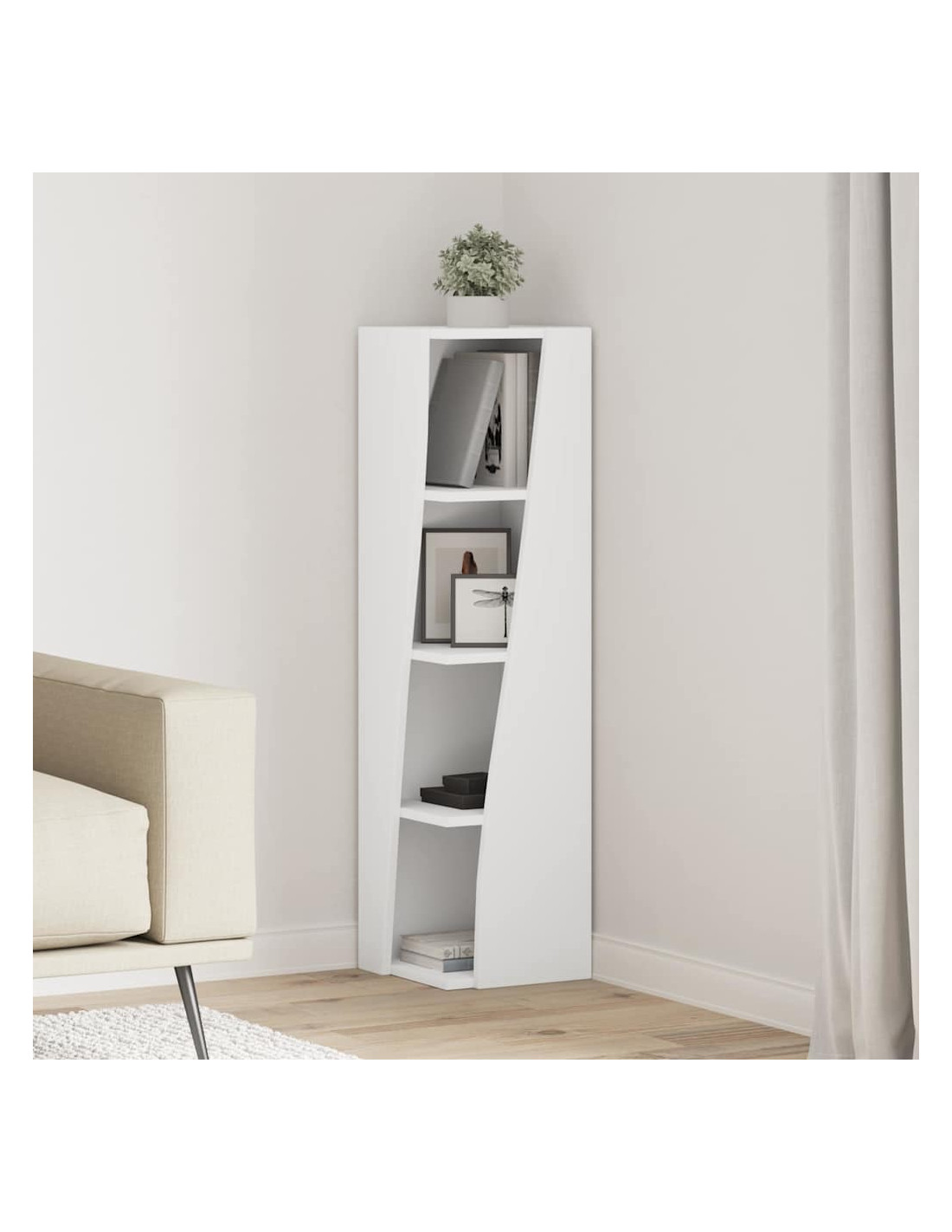 - Design angolare salvaspazio: Questo mobile angolare moderno ha scaffali progettati per sfruttare al massimo gli spazi piccoli. Ideale per chi ha poco spazio ma non vuole rinunciare a stile e funzionalità.