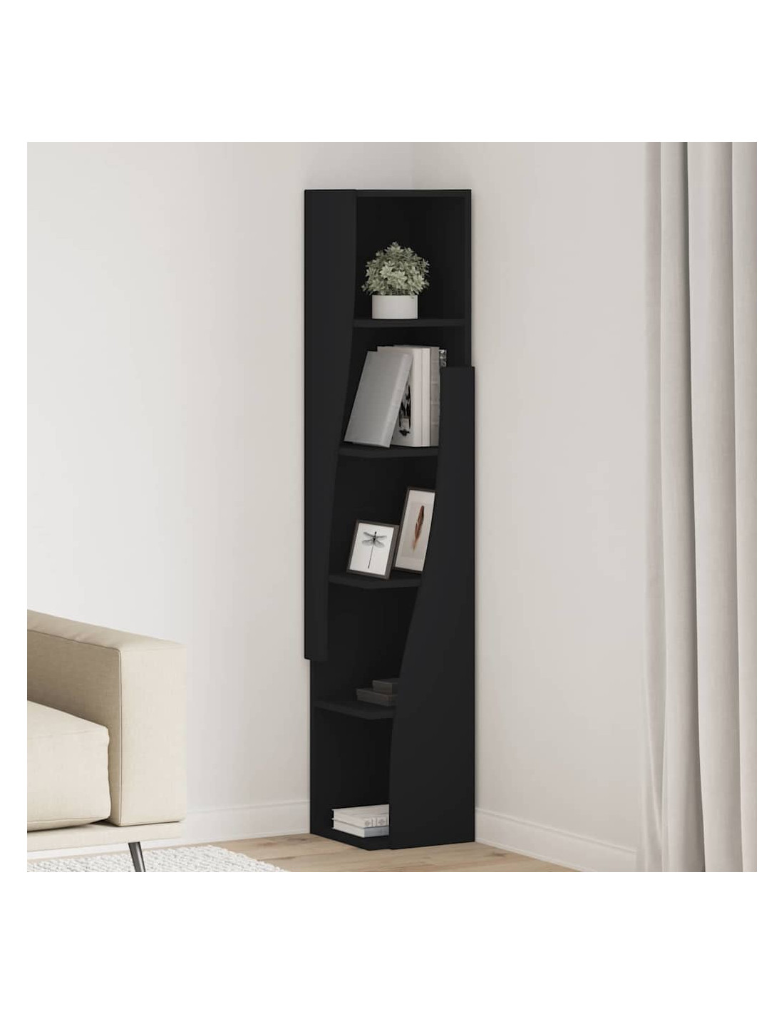 - Design angolare salvaspazio: Questo mobile angolare moderno ha scaffali progettati per sfruttare al massimo gli spazi piccoli. Ideale per chi ha poco spazio ma non vuole rinunciare a stile e funzionalità.
