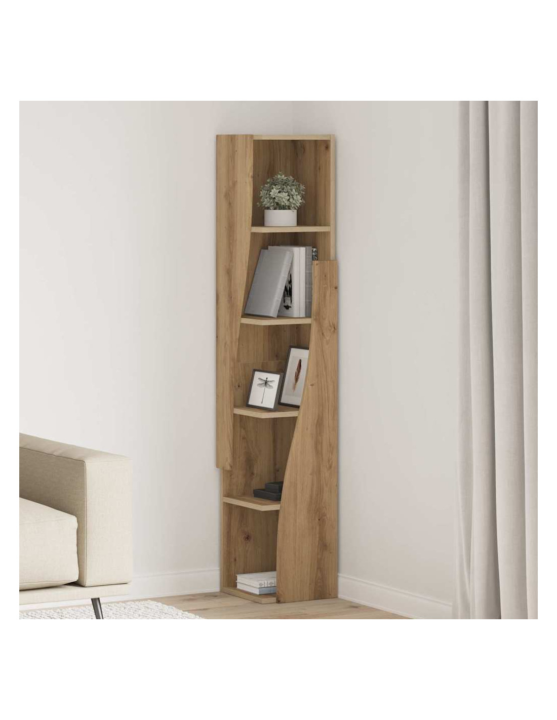 - Design angolare salvaspazio: Questo mobile angolare moderno ha scaffali progettati per sfruttare al massimo gli spazi piccoli. Ideale per chi ha poco spazio ma non vuole rinunciare a stile e funzionalità.