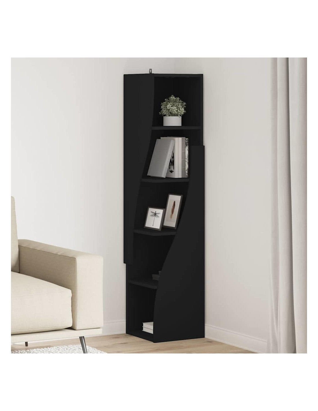 - Design angolare salvaspazio: Questo mobile angolare moderno ha scaffali progettati per sfruttare al massimo gli spazi piccoli. Ideale per chi ha poco spazio ma non vuole rinunciare a stile e funzionalità.