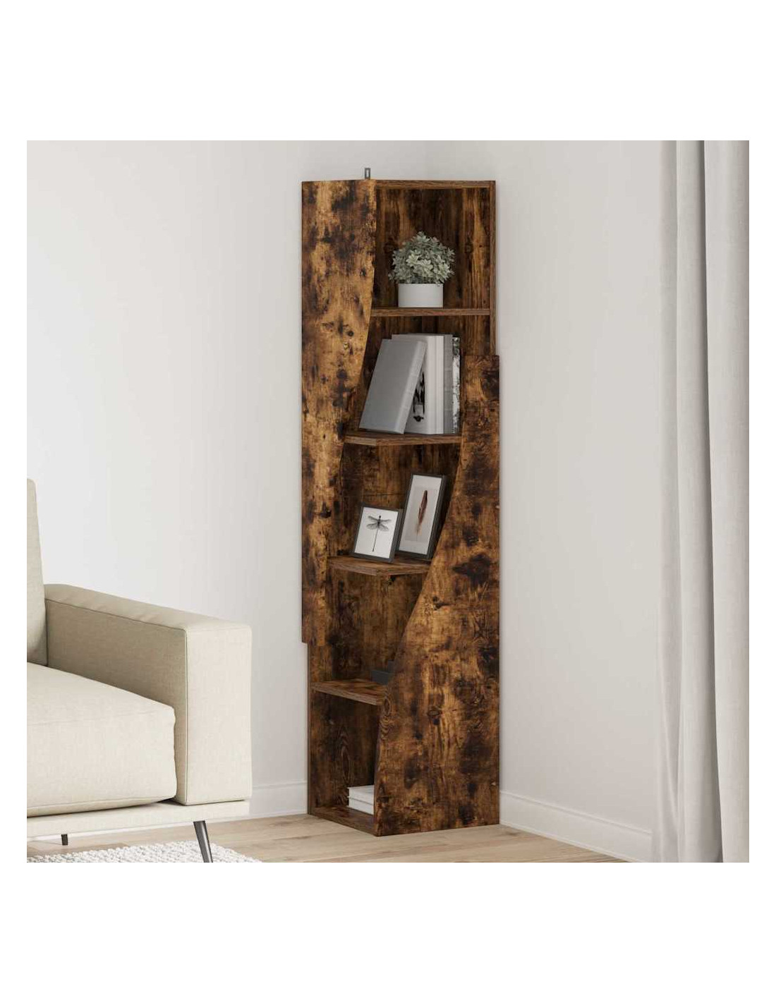 - Design angolare salvaspazio: Questo mobile angolare moderno ha scaffali progettati per sfruttare al massimo gli spazi piccoli. Ideale per chi ha poco spazio ma non vuole rinunciare a stile e funzionalità.