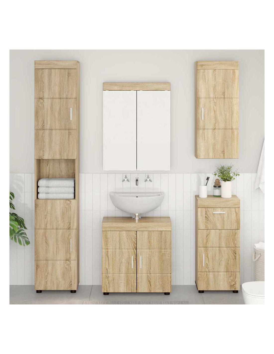 Questo set di armadietti moderni per il bagno dà un tocco elegante e minimalista al tuo spazio. Pensato per essere funzionale e stiloso, usa legno ingegnerizzato per offrire una soluzione di stoccaggio resistente e duratura. Perfetto per ogni ambiente, si integra bene nei bagni moderni, fornendo ampio spazio per riporre tutto il necessario. La texture liscia e la finitura opaca aggiungono un tocco di classe, mentre il design pratico si adatta a qualsiasi dimensione di bagno.