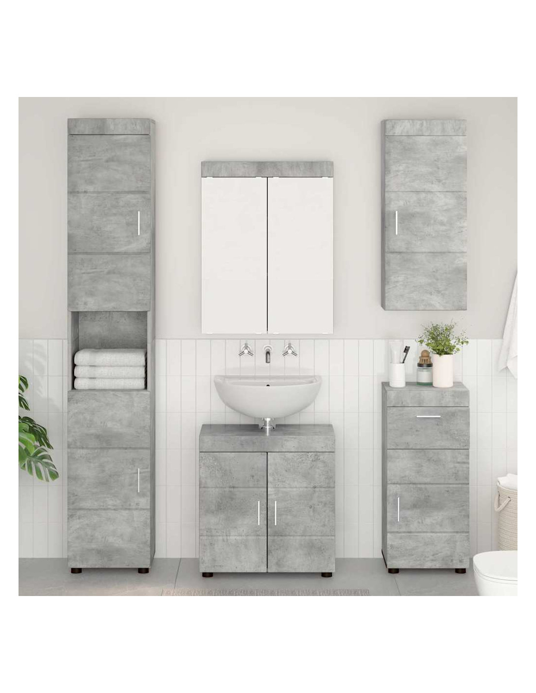 Questo set di armadietti moderni per il bagno dà un tocco elegante e minimalista al tuo spazio. Pensato per essere funzionale e stiloso, usa legno ingegnerizzato per offrire una soluzione di stoccaggio resistente e duratura. Perfetto per ogni ambiente, si integra bene nei bagni moderni, fornendo ampio spazio per riporre tutto il necessario. La texture liscia e la finitura opaca aggiungono un tocco di classe, mentre il design pratico si adatta a qualsiasi dimensione di bagno.