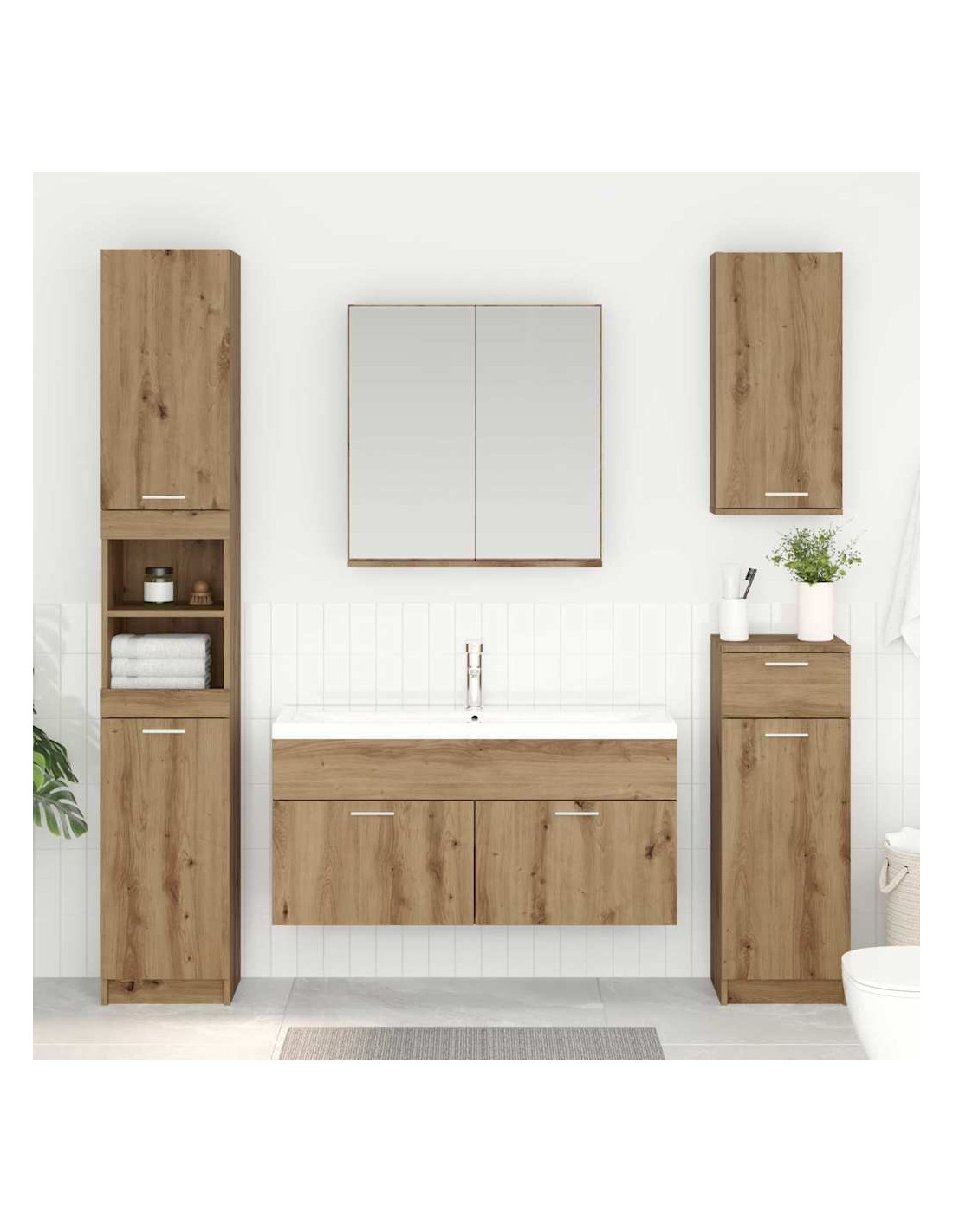 Questo mobiletto lavabo in legno è una combinazione perfetta di utilità e stile. Disegnato per abbellire ogni bagno con la sua forma rettangolare, offre una soluzione di stoccaggio chic. Realizzato in legno ingegnerizzato, aggiunge un tocco di eleganza semplice che si abbina bene con il resto dell'arredamento moderno. Goditi uno spazio senza ingombri che questo mobiletto ti può garantire.